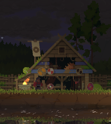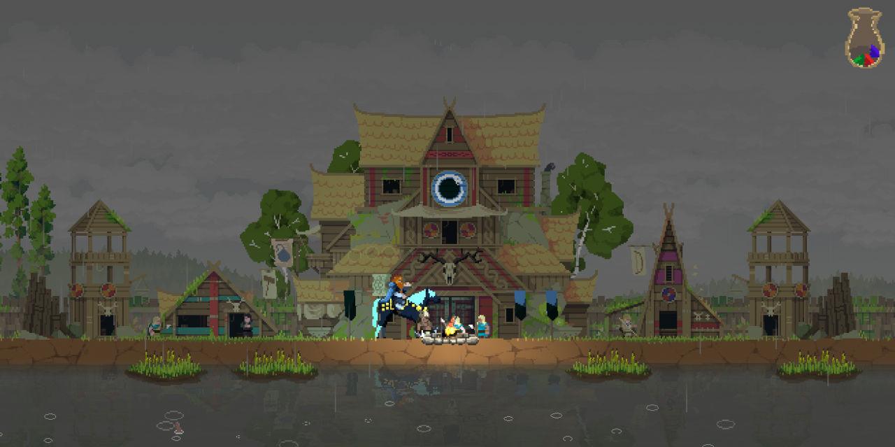 Here you can upgrade your Axmen into Wildmen for 6 coins – they get a set of Hatchets and a Beaver (?) pelt. They will run out at night and kill Greed.