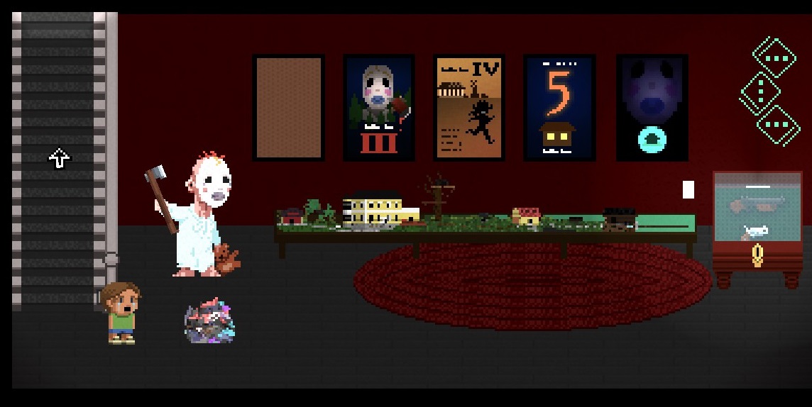 But where is the key? It’s not in the key book above the TV. It’s in a bit more unconventional place, but one that’s not hard to notice. If you turn on the fan in the boy’s room upstairs, you may notice toys being blown away, to seemingly somewhere you can’t reach. But if you control one of the kids, you find that it’s a secret passage! (That also serves as a great hiding spot for the kids)