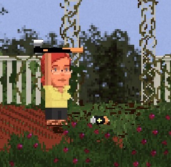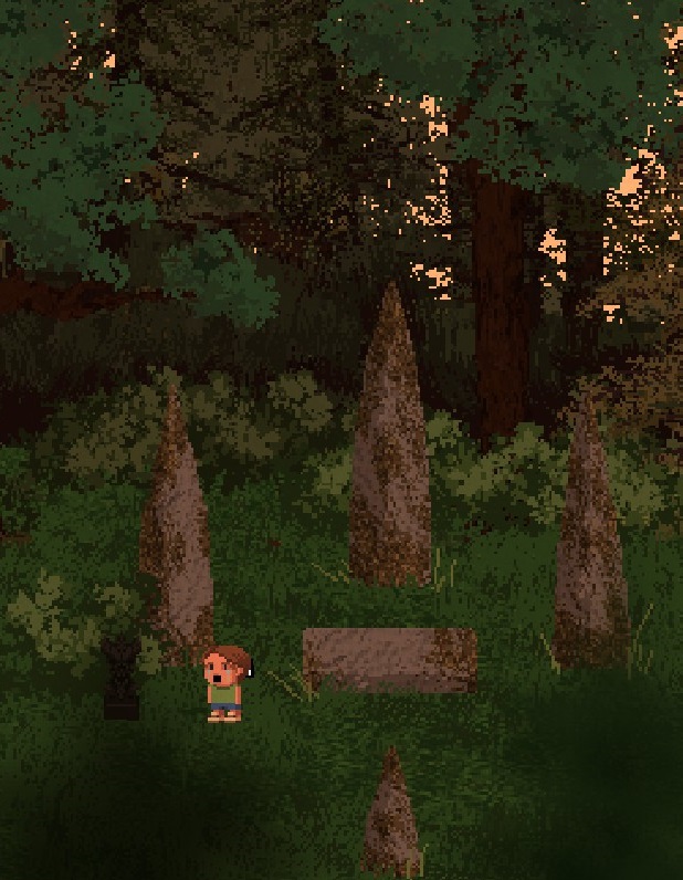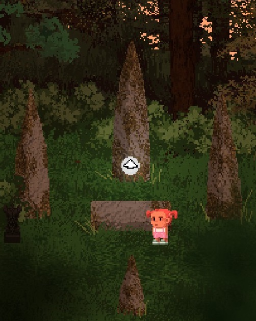 But one statue seems to be missing. So you gotta go find it. Nothing can ever just be simple, can it? To find it, you need to get access to the woods, a new area. You have to get a weapon- something that is sharp and/or can cut things- like the axe, the scythe, the hammer, or the knife, and go to the area blocked off by vines. A single swing is all it takes.