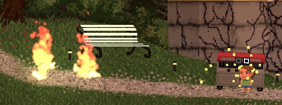 You can push the grill wherever you need it to be, and clicking on the ‘X’ button in the center of it will cause sparks to fly, catching anything super flammable near by on fire. There is enough time to get away before everything sets on fire, granted you don’t box yourself in.