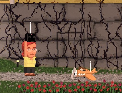 But you might notice it’s out of batteries. One way to get some batteries is to take the radio from the upstairs balcony and smash it.