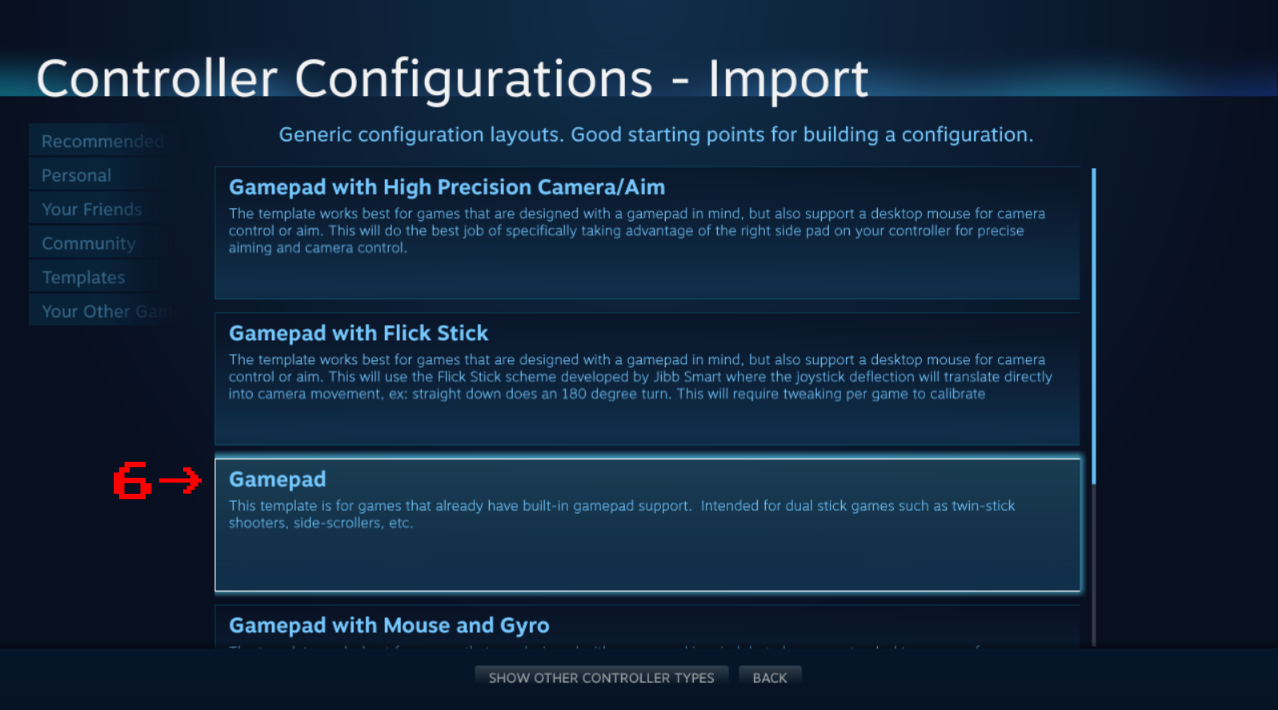 - If the controller type is not “Gamepad”, the in-game controls will malfunction. Press “Browse Configs”