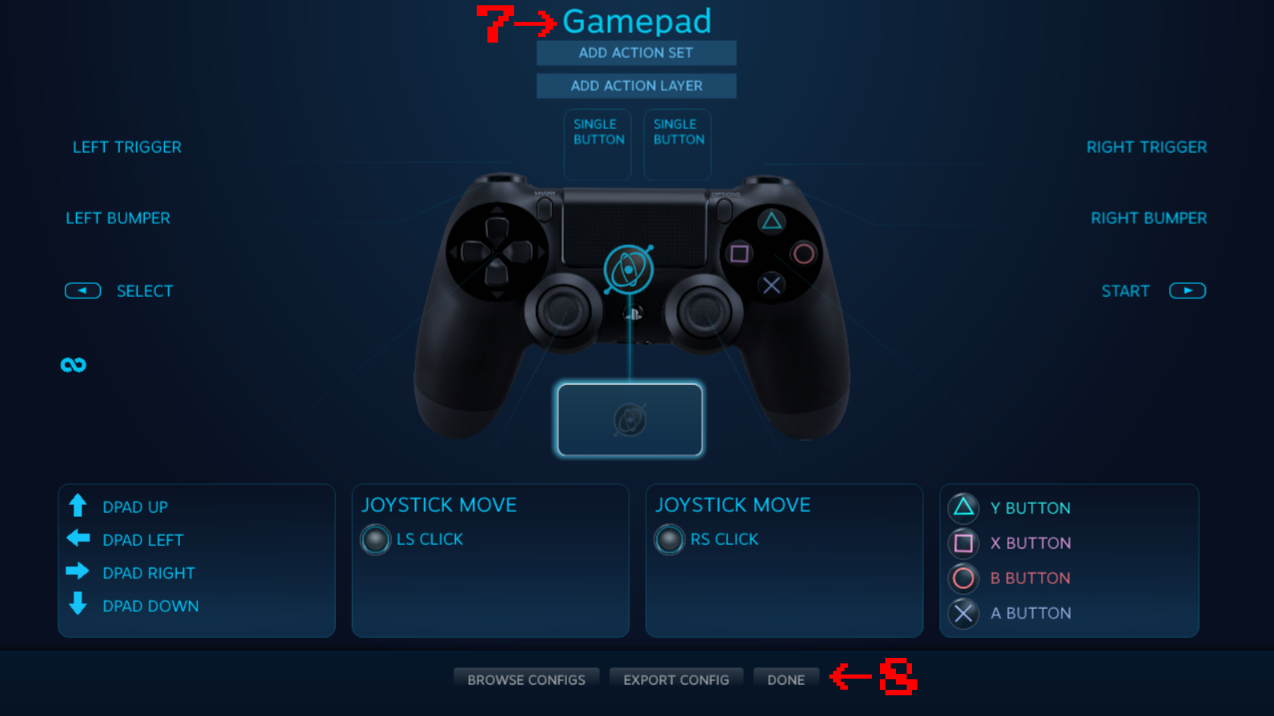 - Ensure that “Gamepad” is your selected configuration. Press “Done”, and launch the game to test that your problems are fixed.