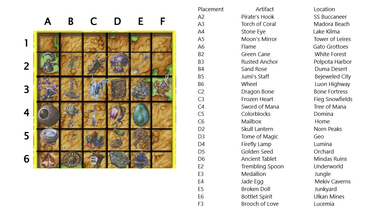 Placing all artifacts in this order will allow you to get all the Events, Pets, Items, etc.