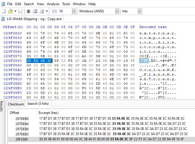 Replace the last instance (located at 029F3580) of 35 FA 0E 3C with 35 FA 60 3C.