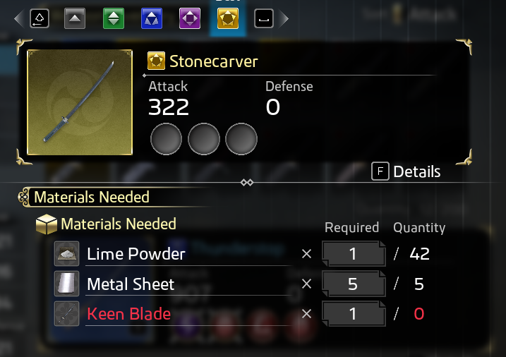 Continuously craft Keen Blades using Silver Hammers until you’ve reached the required amount, then proceed to continuously craft Stone Carvers with Silver Hammers until you’ve reached the required amount.