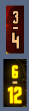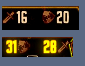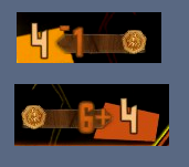 These are the most important part of the whole shebang, with the top number being the minimum damage an attack does, and the bottom being the maximum. A greater number means an attack wins out over the opposing attack. When the fraction glows yellow, it means it’s getting a bonus due to the attack/defense stat.