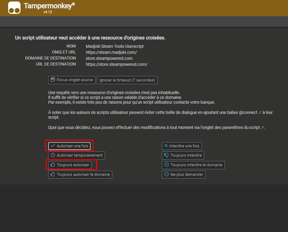 There you can go back to the website and refresh it, you’ll be asked by Tampermonkey to allow the script to run, click on “Allow once” or “Always allow”.