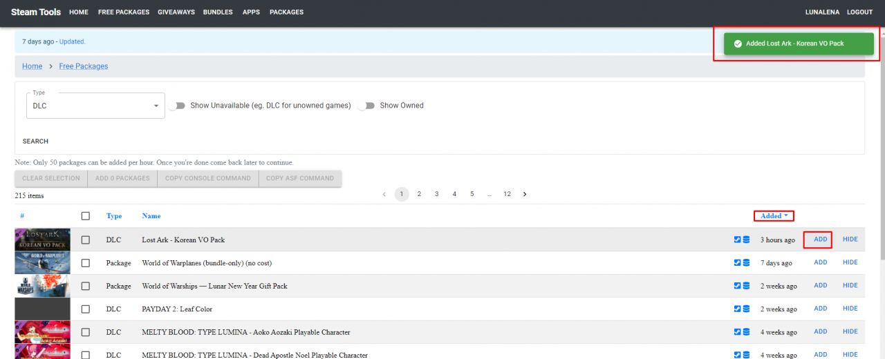 On the right side of the DLC, you’ll now be able to click on “ADD” and if it is successful, you should be able to see the following message in green on the top right of your screen.