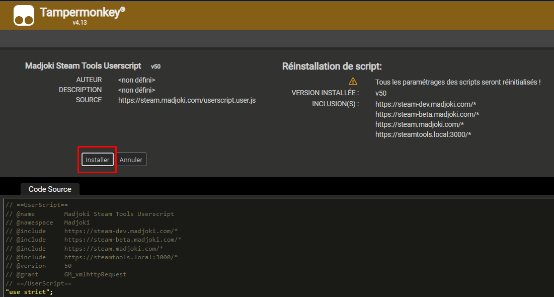 You’ll be redirected on a Tampermonkey page to install the script, click on “Install”.