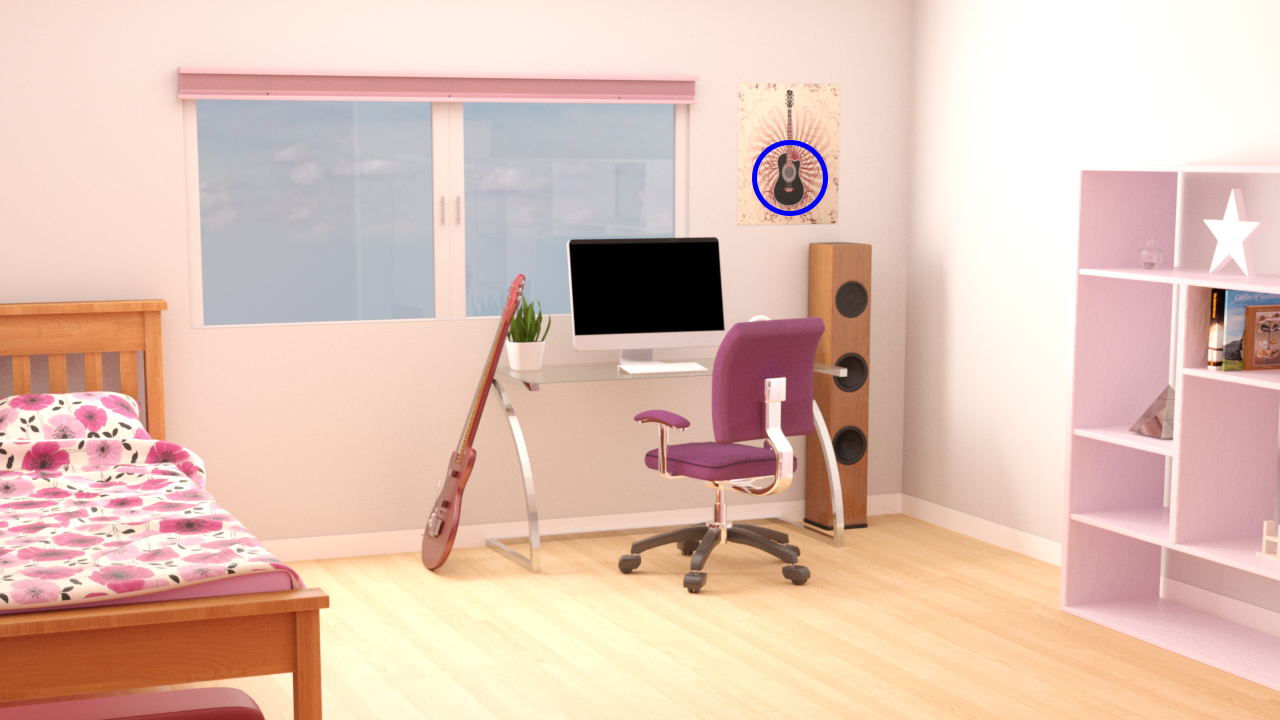 Megan’s room. Click on the guitar poster