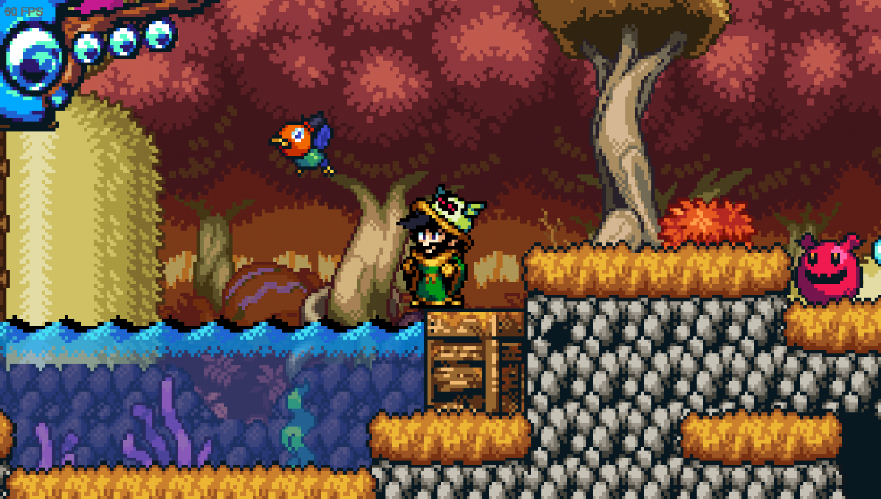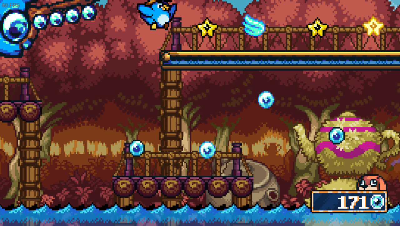Visible. Jump or double-jump off the bird from the right, using magic to stun it if necessary.