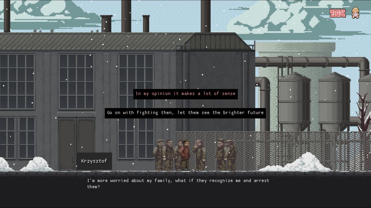 - Walk up to the protestors and talk to them, pick the “And you are going to let the ruling party for that?” dialogue option.