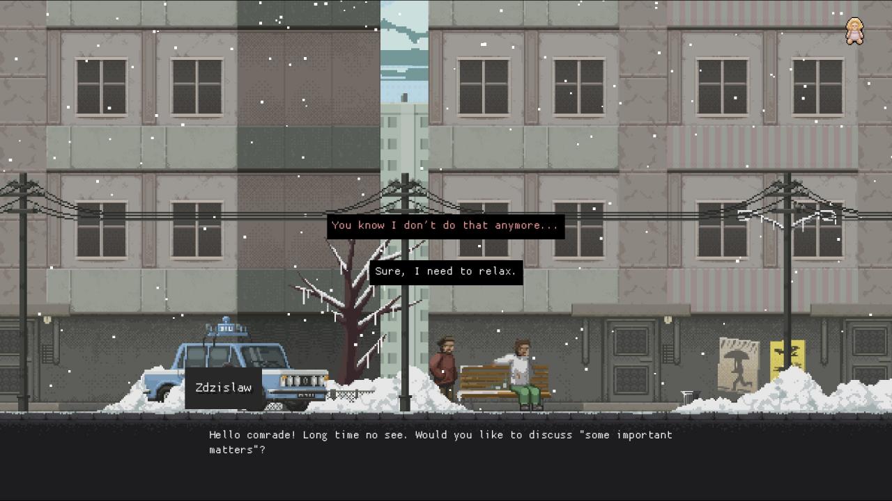 - The stranger will thank you and drive you home, enter the building and keep playing the game until you get the “Those were the days, my comrades” ending + achievement.