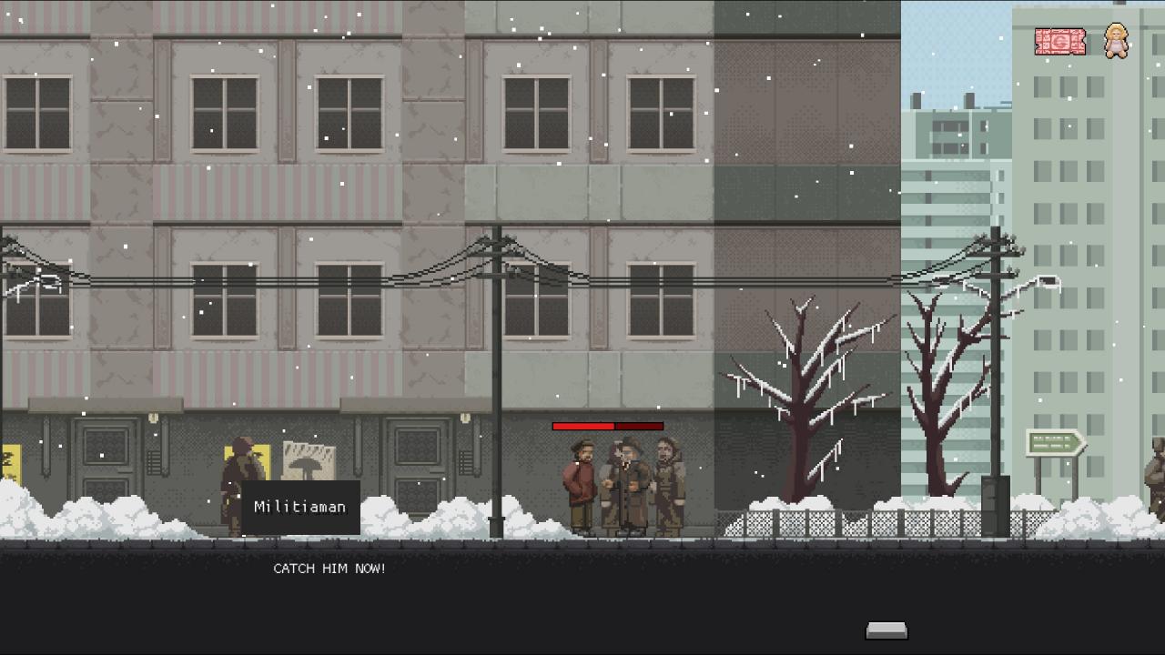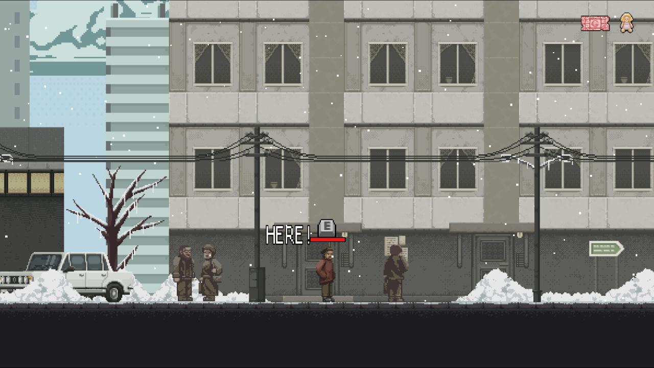 - Now start running right (the Militiamen are chasing you) until you see *HERE*! next to a door, enter that building.