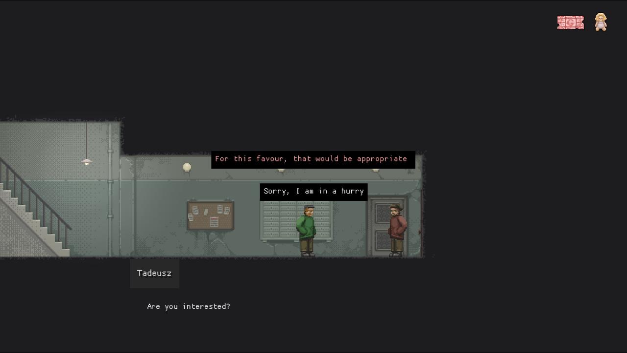 Now pick the other dialogue option: “Sorry, i’m in a hurry”.