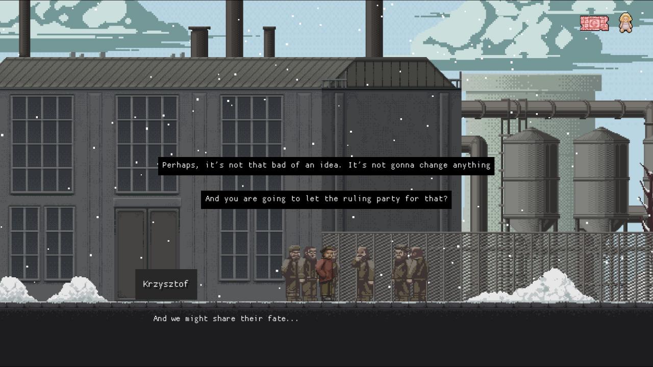 - Walk up to the protestors and talk to them, pick the “And you are going to let the ruling party for that?” dialogue option.