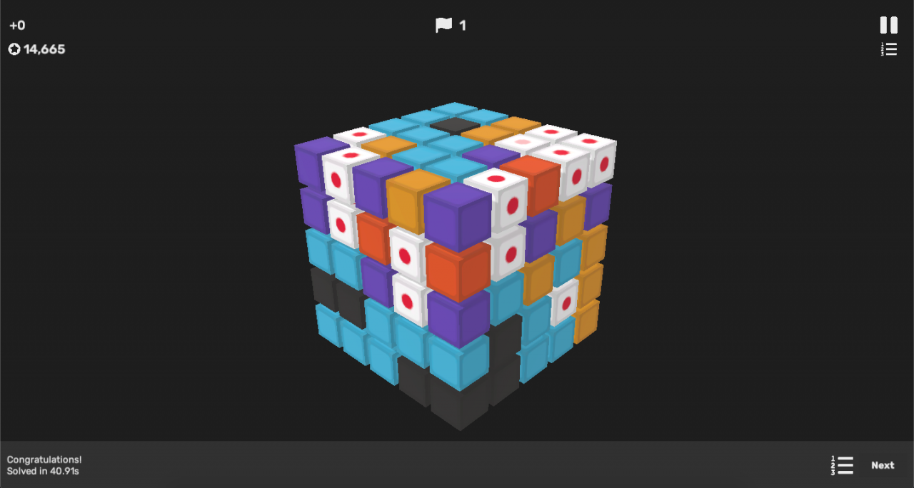 This is by using Lightning Clears to solve all the cubes leading to campaign Level 30. This will require at most 551 Lightning Clears. Because of the amount of credits those Clears cost, this method isn’t highly recommended. However if you do pursue this way, remember to use the Lightning Clears in a diagonal pattern (seen in the .gif on Quadrilogy)