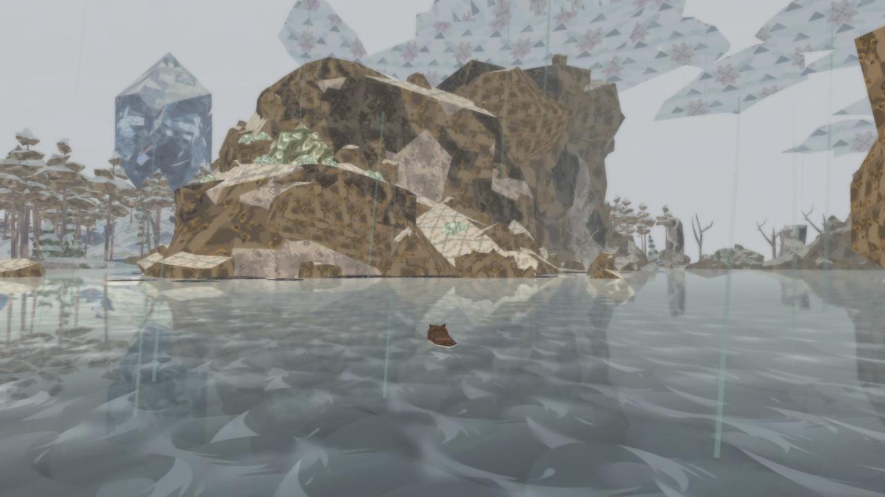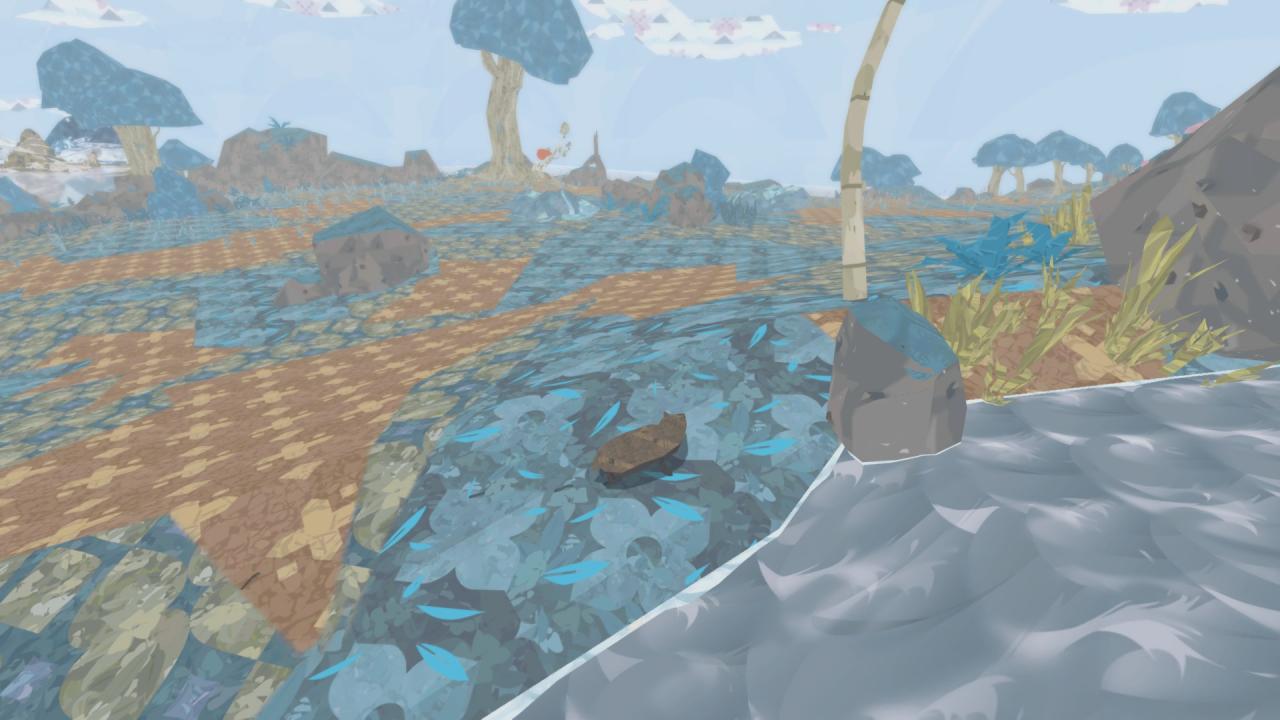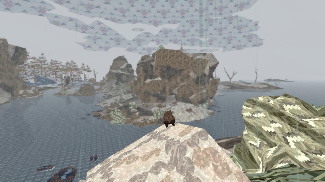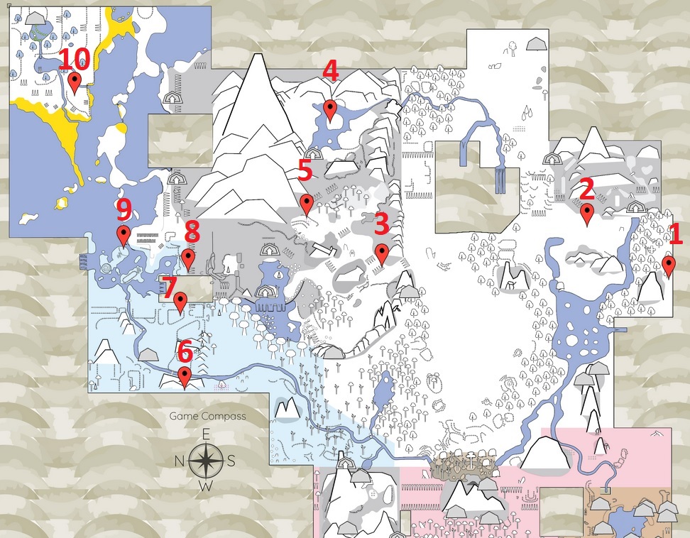 Head north to the beige/brown area. There are 2 islands with big rock formations on them. You want to go for the east one. It’s on top. There’s a convenient zigzagging path leading up top.