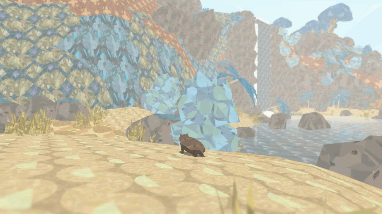 You need to get up. Once you do, position yourself so that the waterfall is behind you. Then, you should be able to see the antelope to the left. Kind of. See the pictures below.
