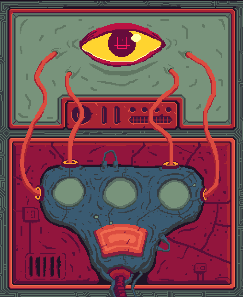 Match the pattern to extract the insanity from the soul. Re-create the sequence displayed in the eye by clicking on the circular buttons and then confirm your sequence with the big orange button. You can try remembering the symbols by giving them names. E.g. bucket, illuminati (triangle), snake and then inputting them into the device will be much faster!