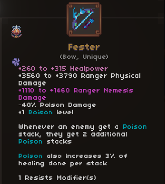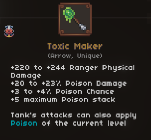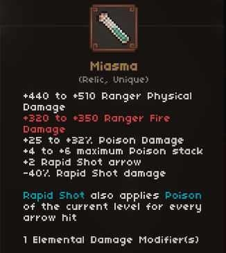 • This item is prone to overcapping if you have a low maximum poison stack or are running the Windforce bow (Ranger attacks have a chance to trigger Rapid Shot).