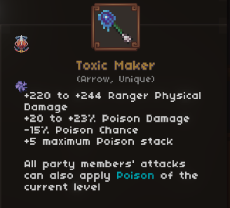 • All poison uniques that allow other party members to apply poison are considered “trigger” uniques, so the Ranger always owns Poison damage.