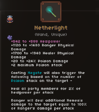 Poison is one of the many ways of dealing damage in MiniHealer. Unlike other options, there are many ways to build Poison – I’m certain variants exist that I did not discuss here. As the game is still in active development, I can only hope that more options are added: for example, uniques that care about when poison stacks expire or are removed; some intersection between poison and channeling; or perhaps something that changes Poison to scale from a different character or Healpower.