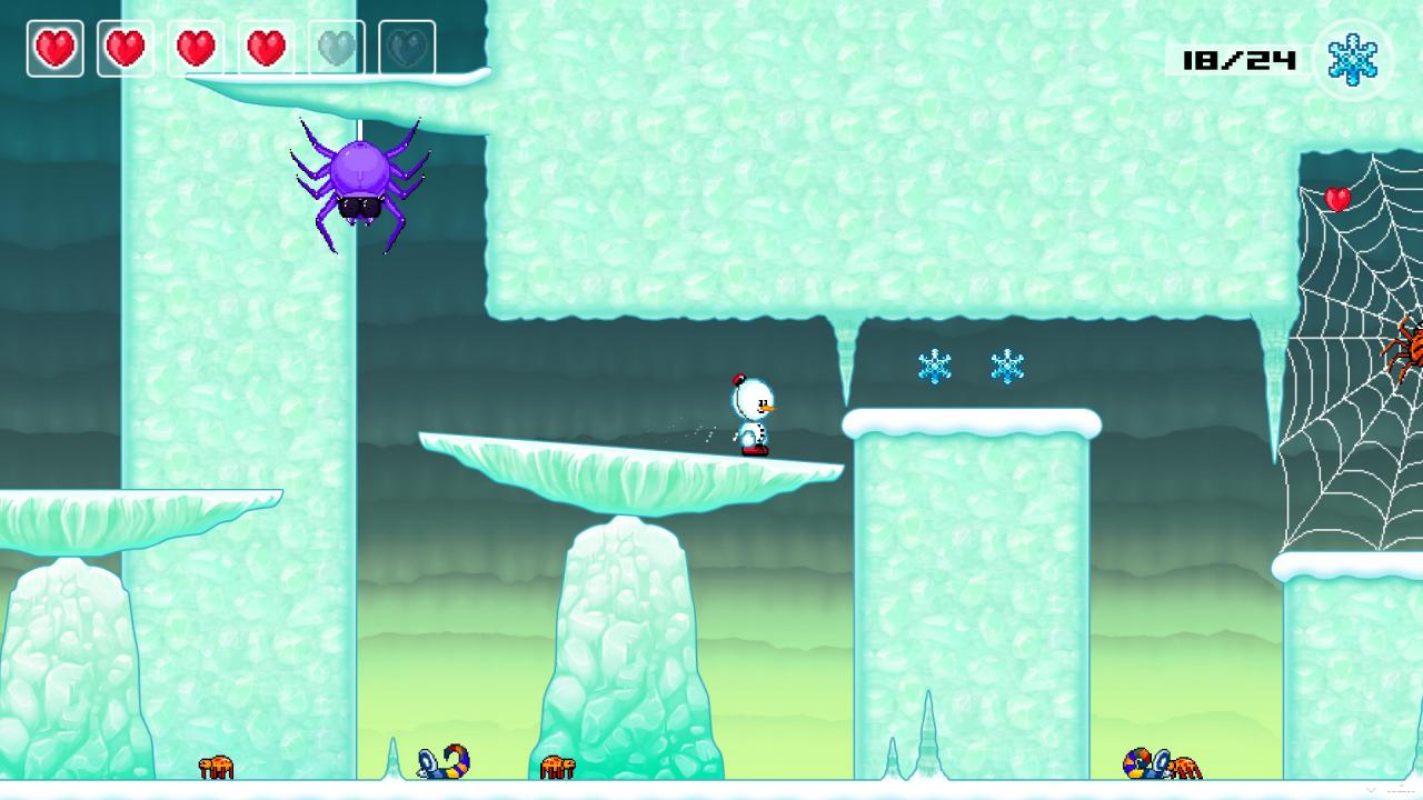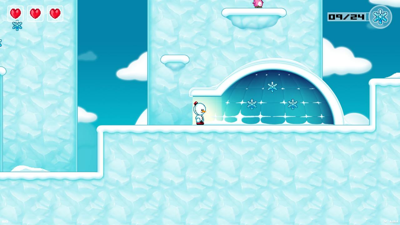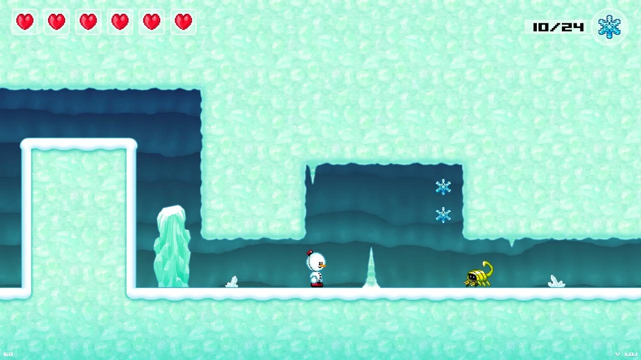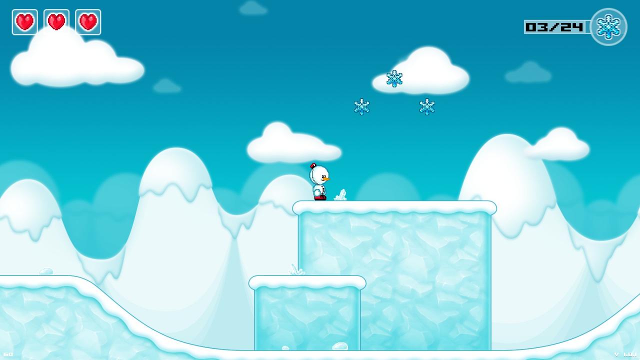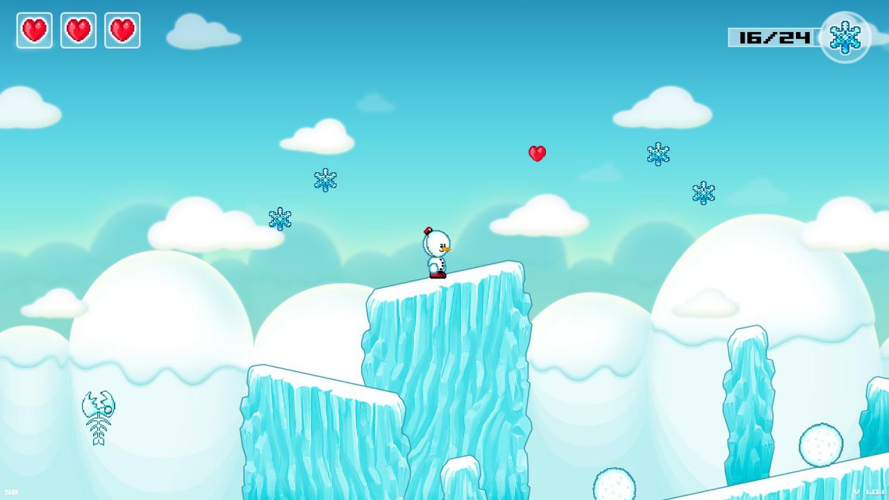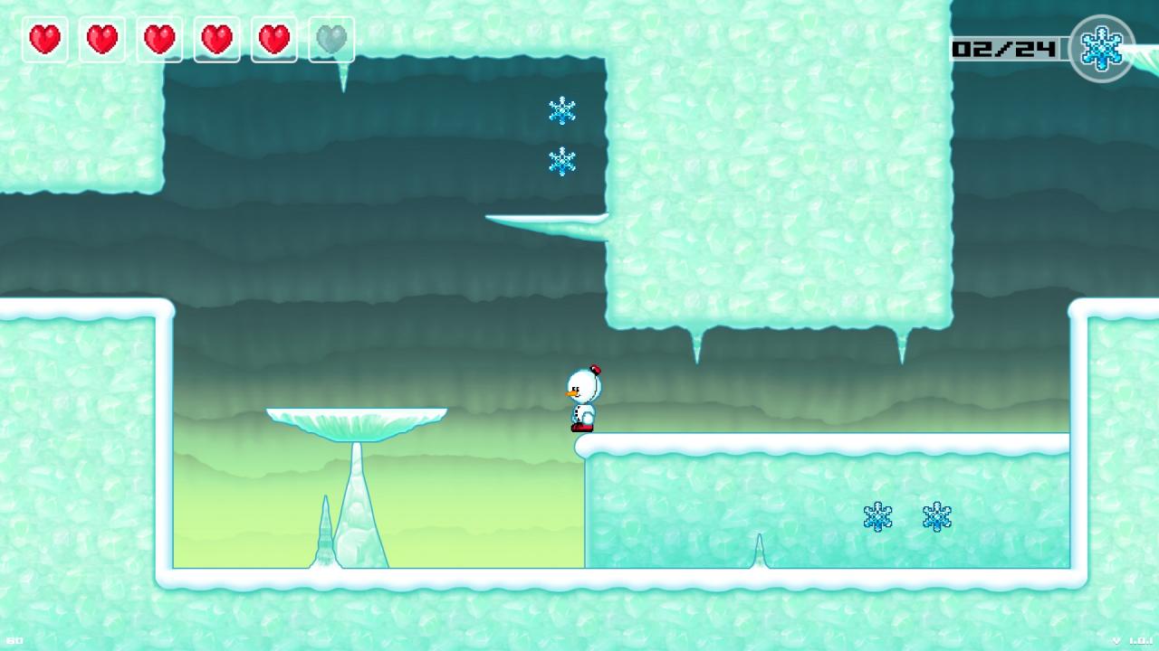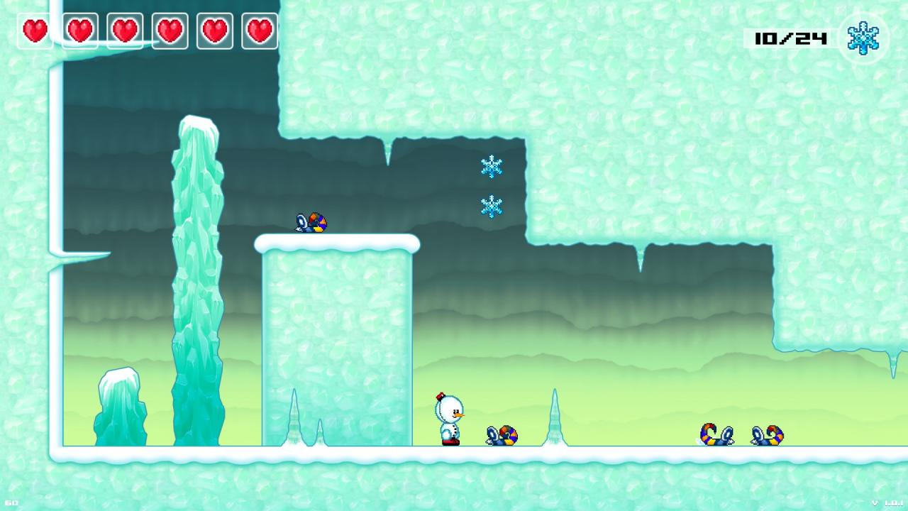 I have included screenshots of all 576 snowflakes- most of them are obvious and straight forward to collect as the game is very linear. There are also screenshots showing the four Heart container locations, and directions to find them. These upgrades are always available on the last level of each area.