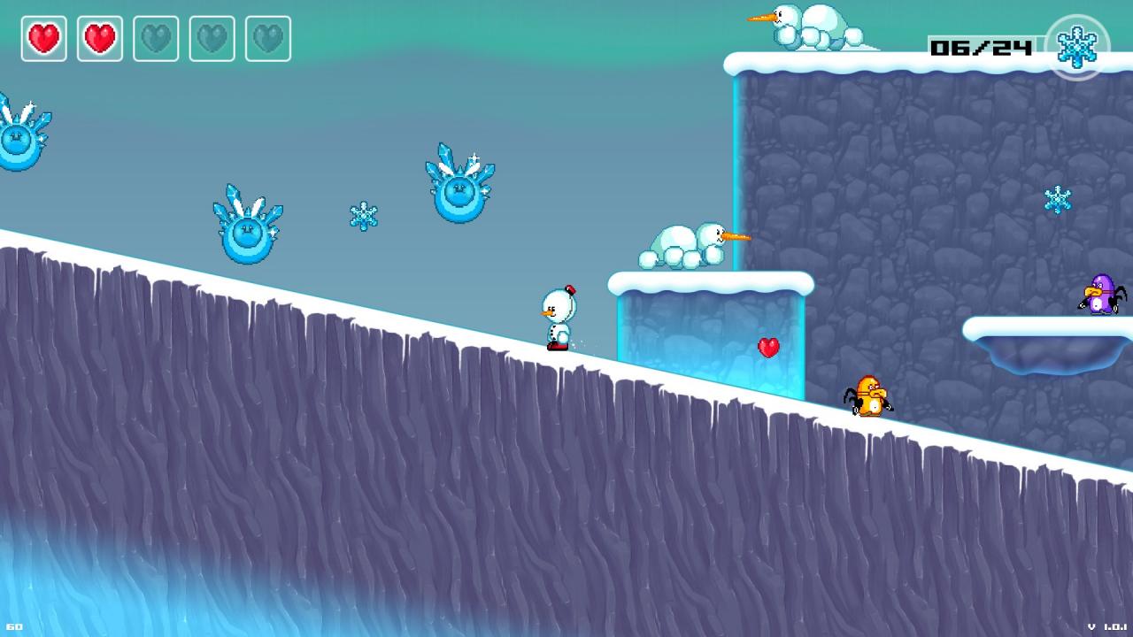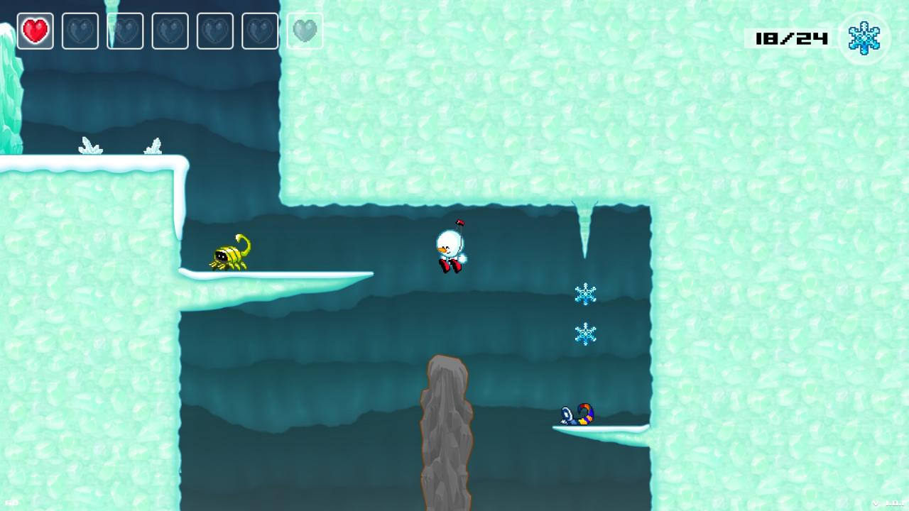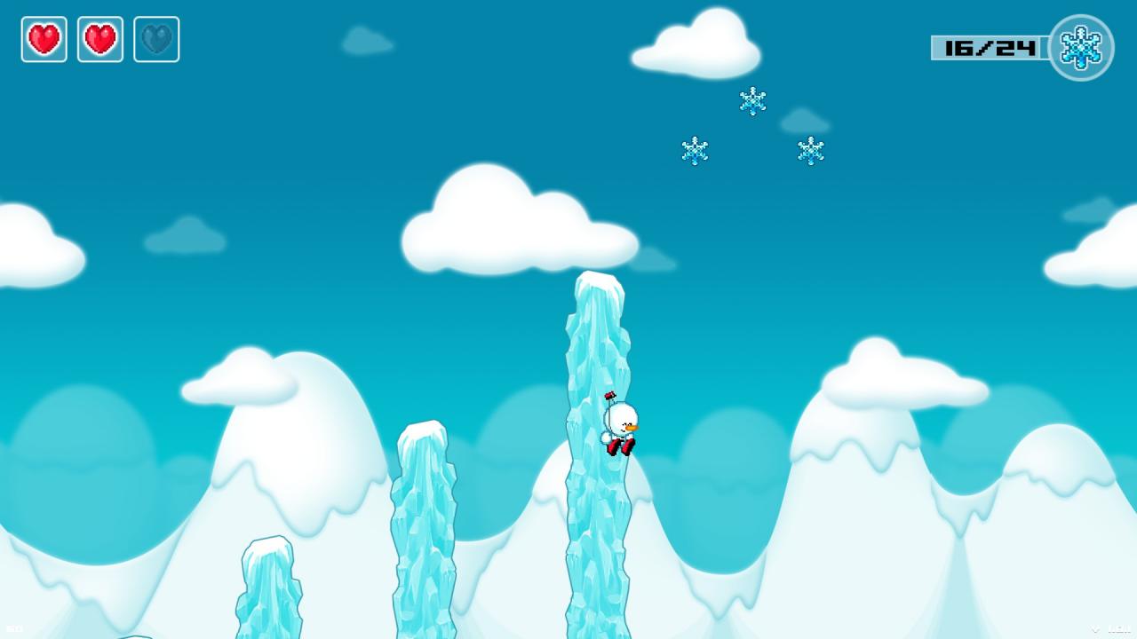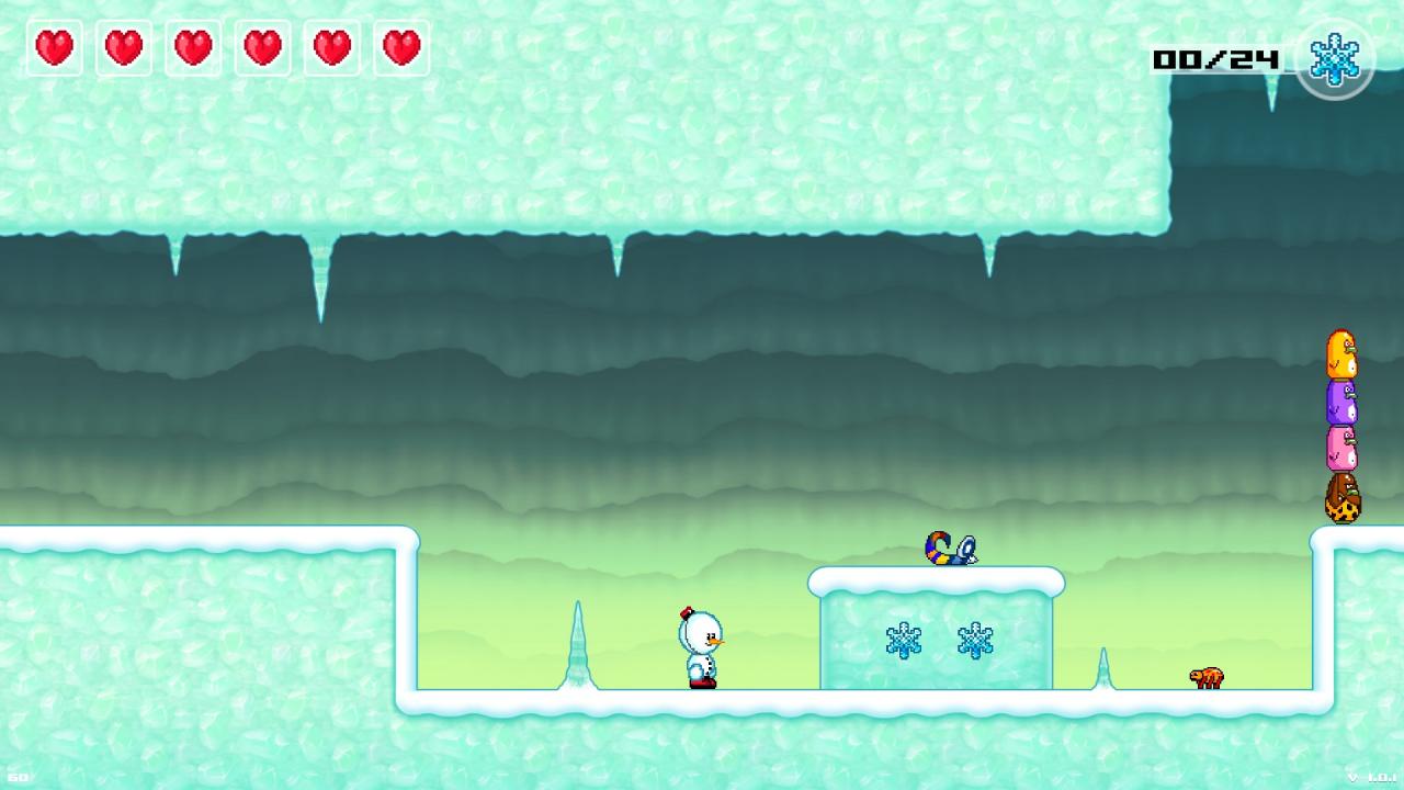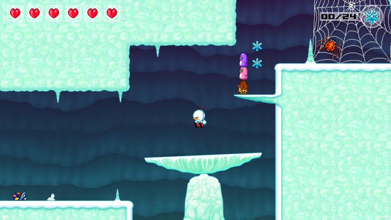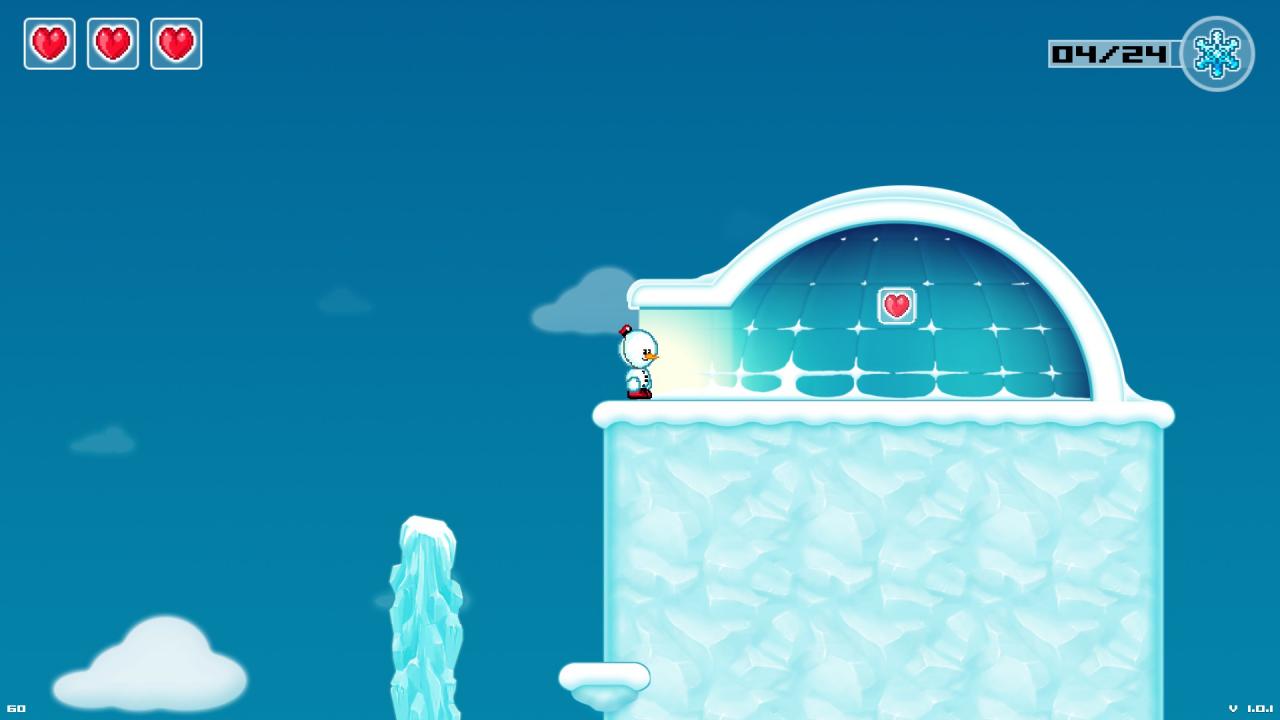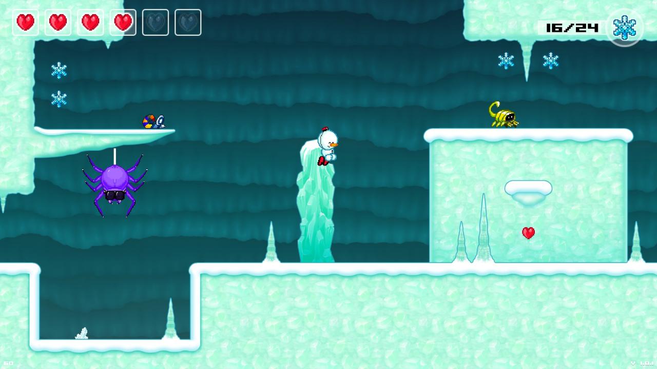 I have included screenshots of all 576 snowflakes- most of them are obvious and straight forward to collect as the game is very linear. There are also screenshots showing the four Heart container locations, and directions to find them. These upgrades are always available on the last level of each area.