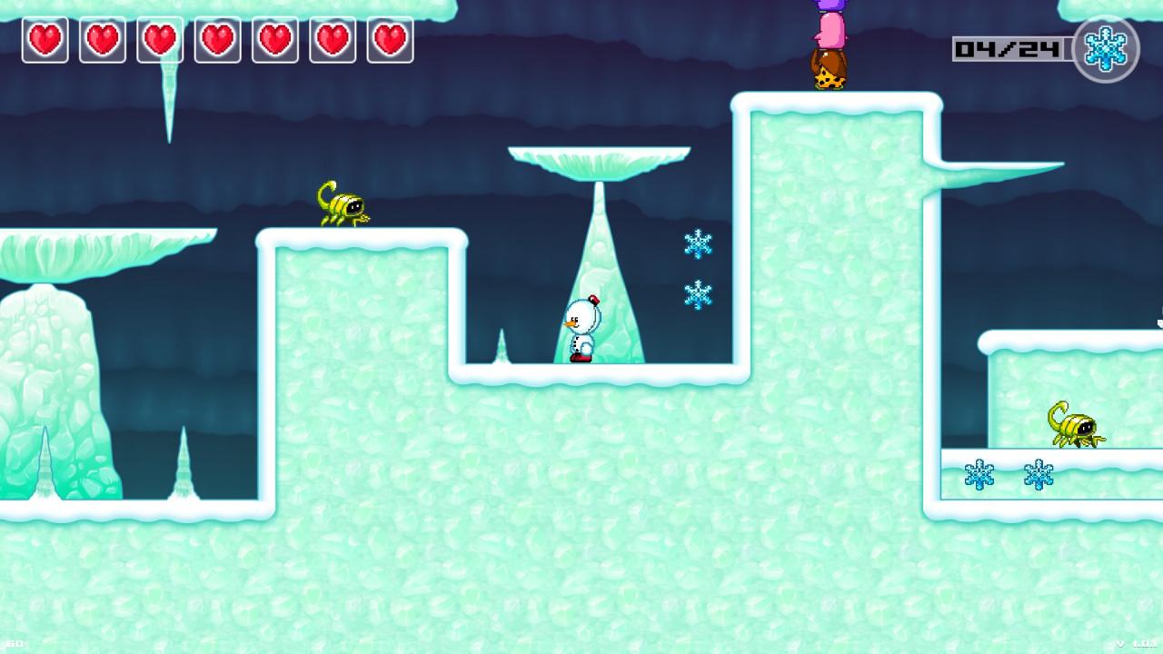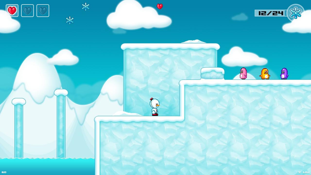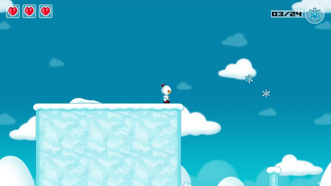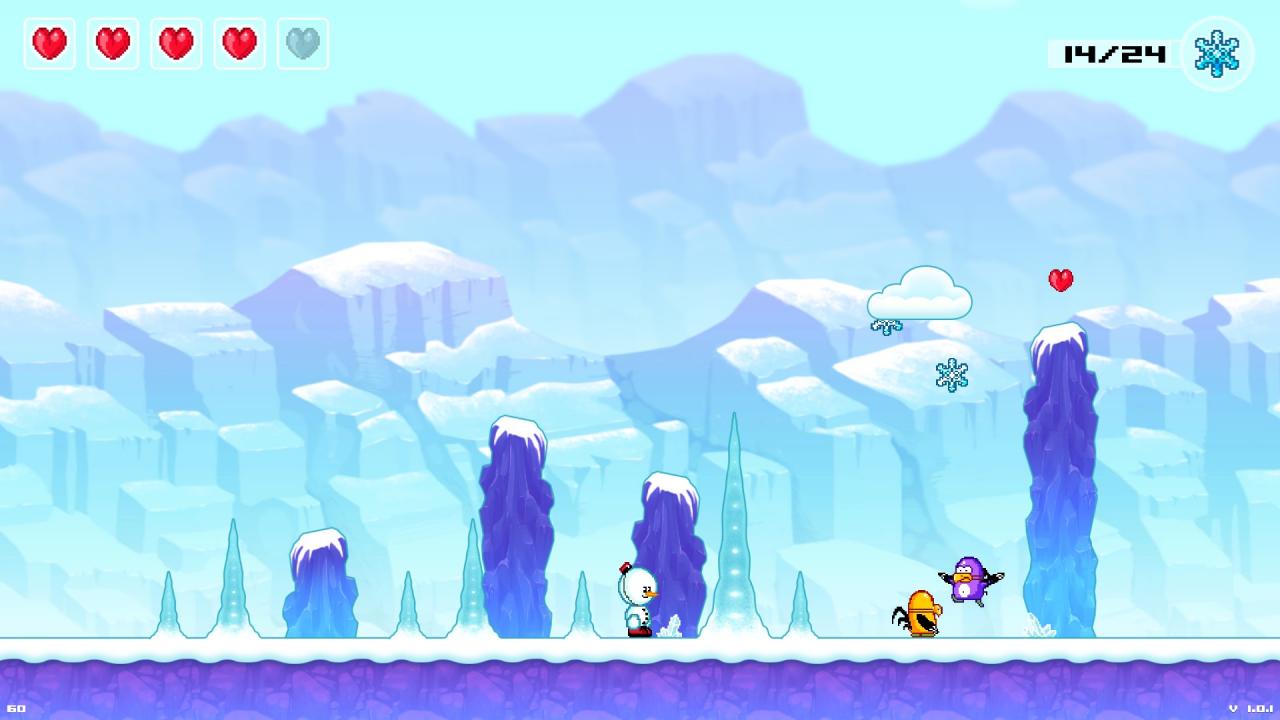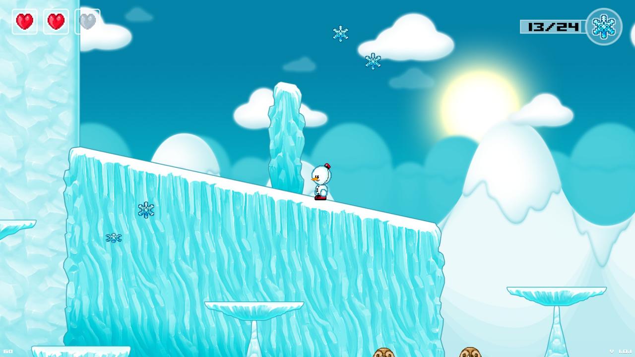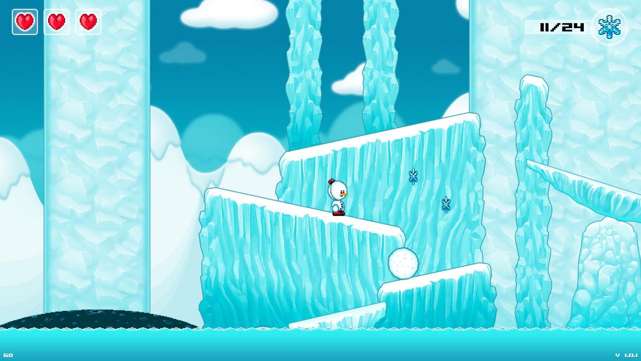 I have included screenshots of all 576 snowflakes- most of them are obvious and straight forward to collect as the game is very linear. There are also screenshots showing the four Heart container locations, and directions to find them. These upgrades are always available on the last level of each area.