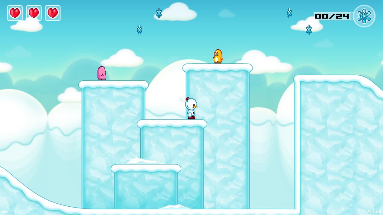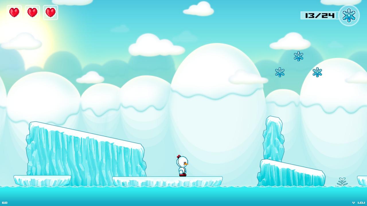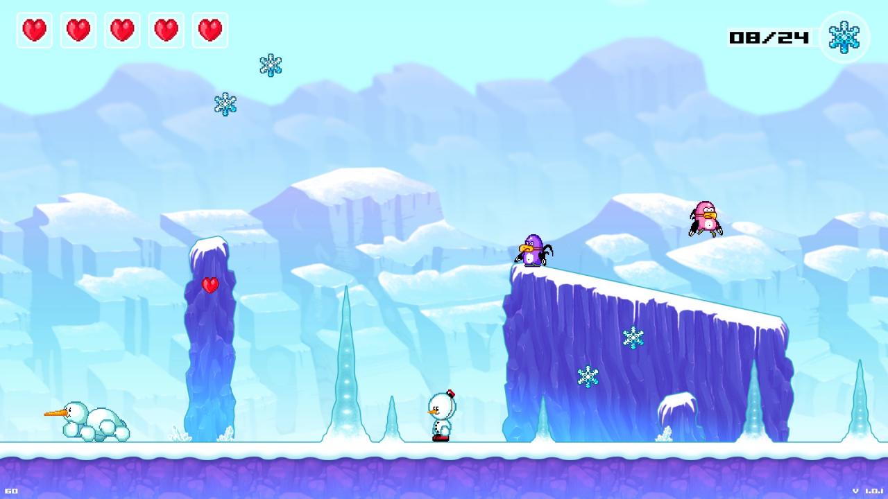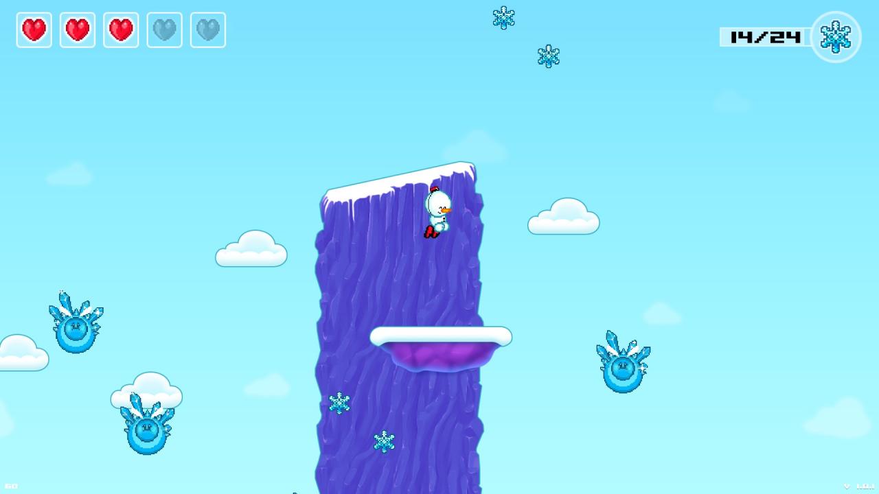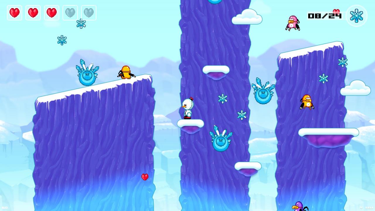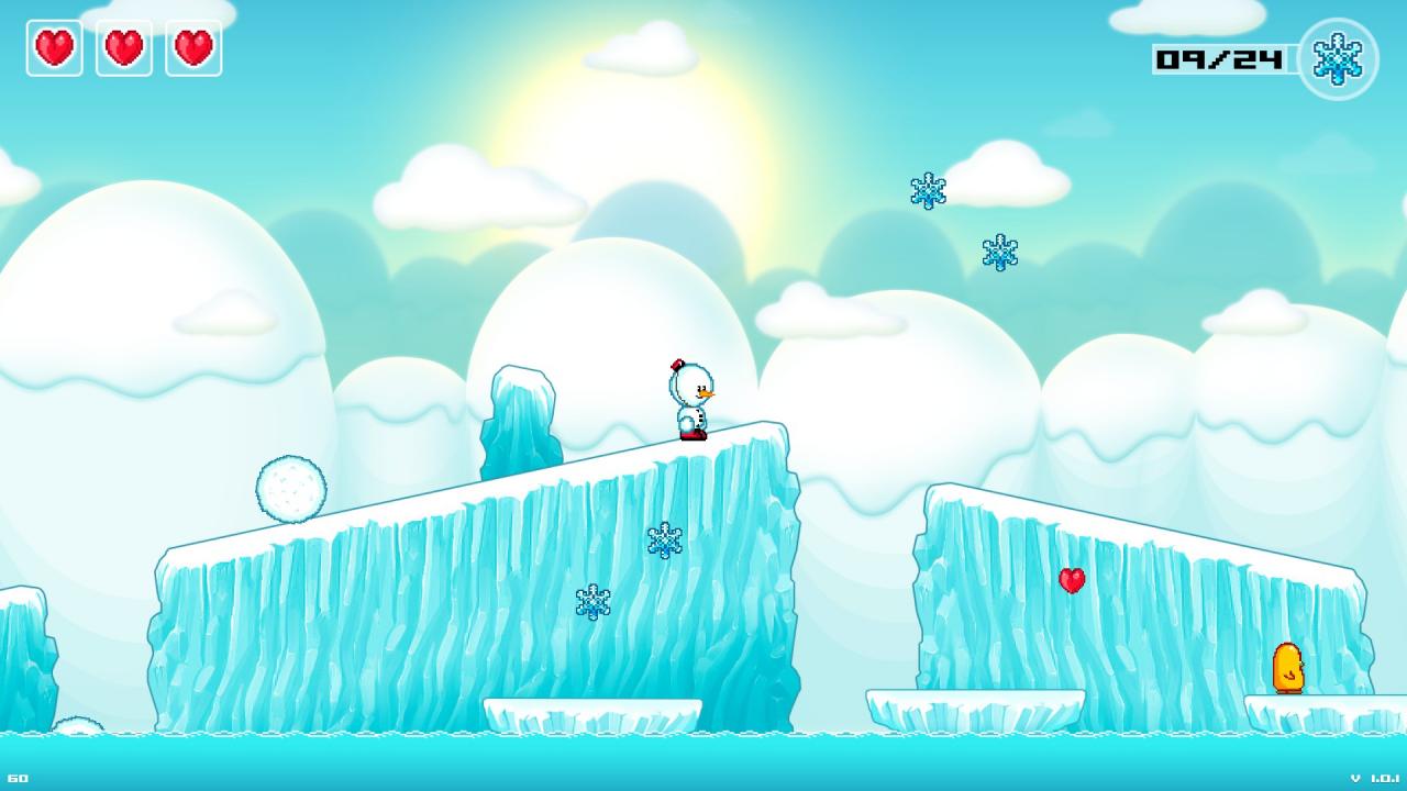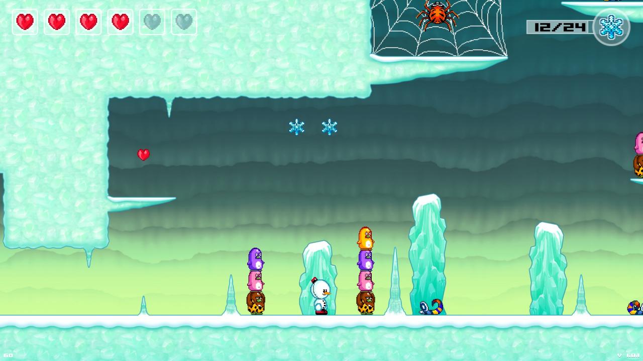 I have included screenshots of all 576 snowflakes- most of them are obvious and straight forward to collect as the game is very linear. There are also screenshots showing the four Heart container locations, and directions to find them. These upgrades are always available on the last level of each area.
