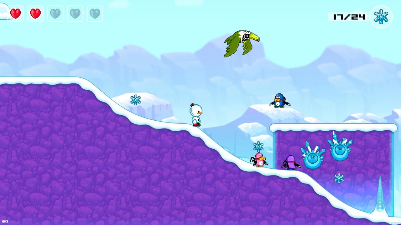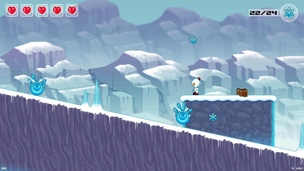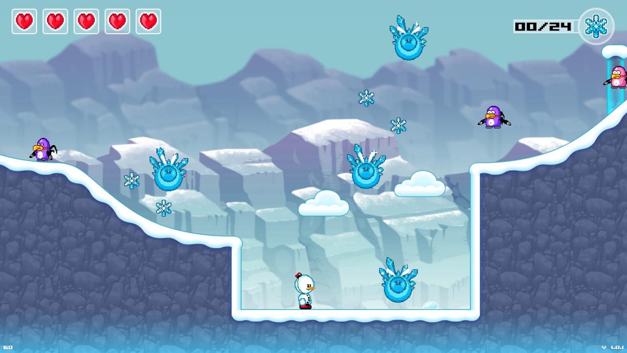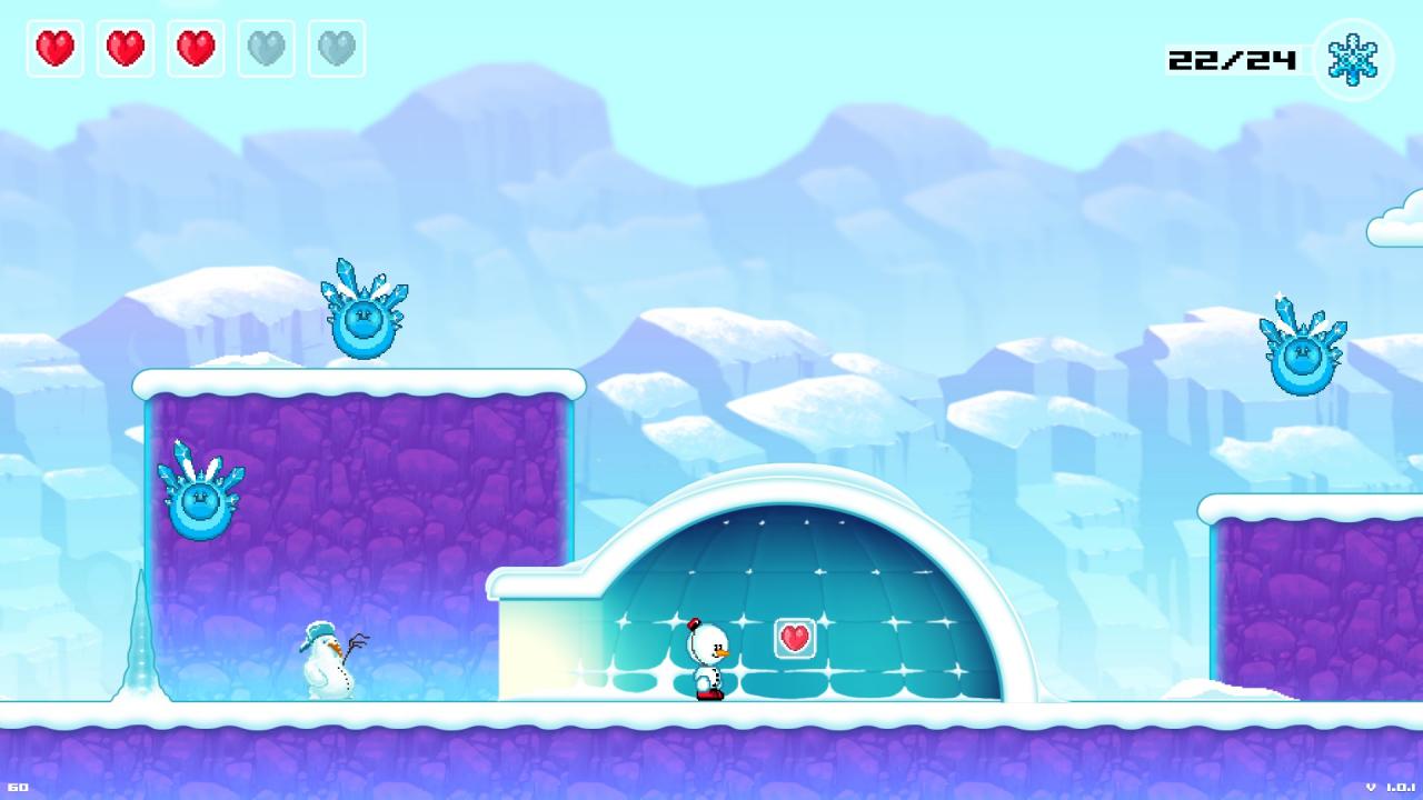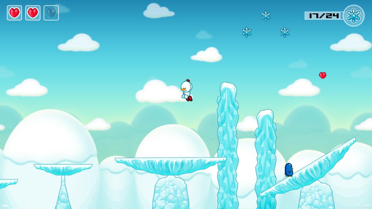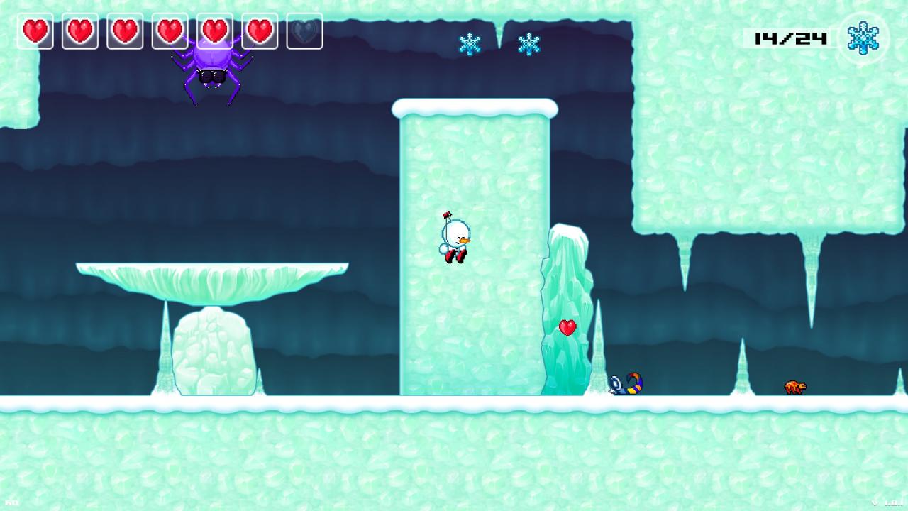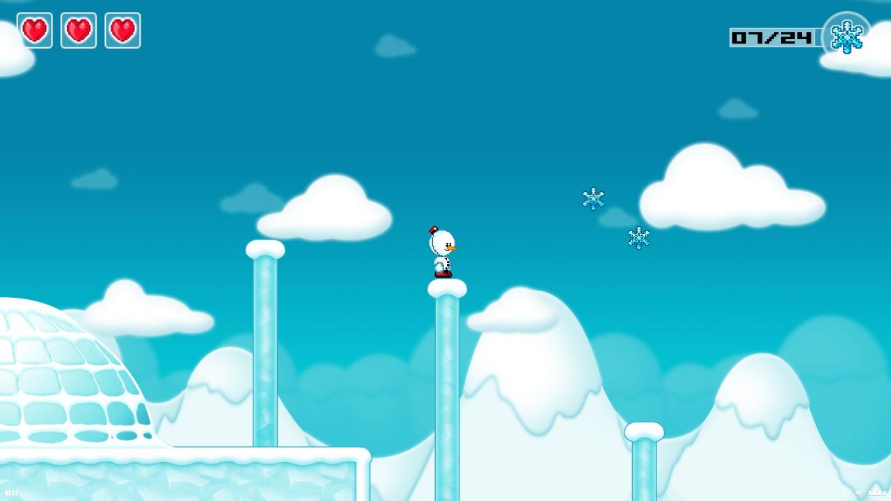 I have included screenshots of all 576 snowflakes- most of them are obvious and straight forward to collect as the game is very linear. There are also screenshots showing the four Heart container locations, and directions to find them. These upgrades are always available on the last level of each area.