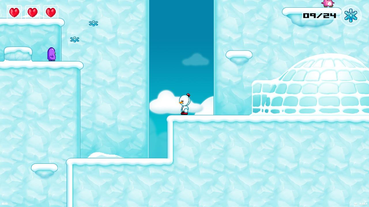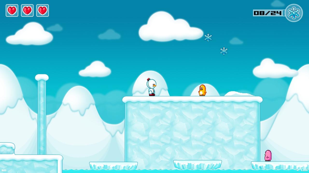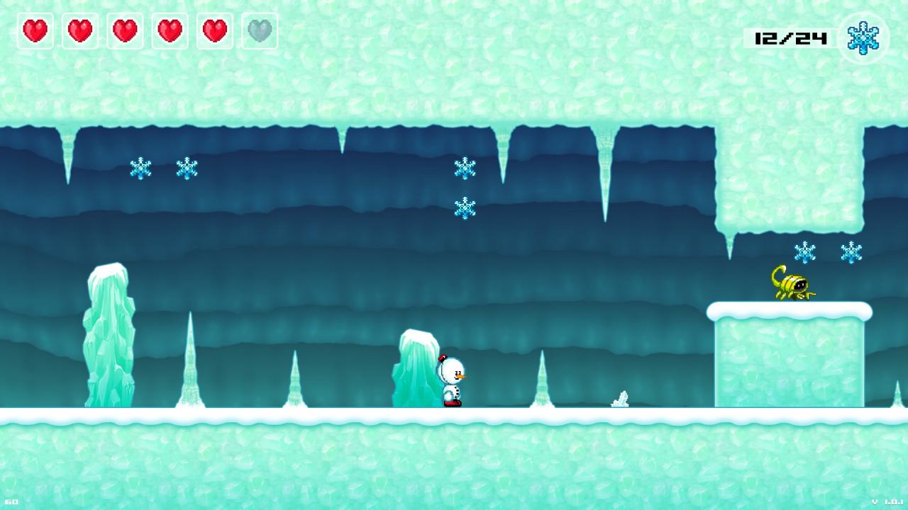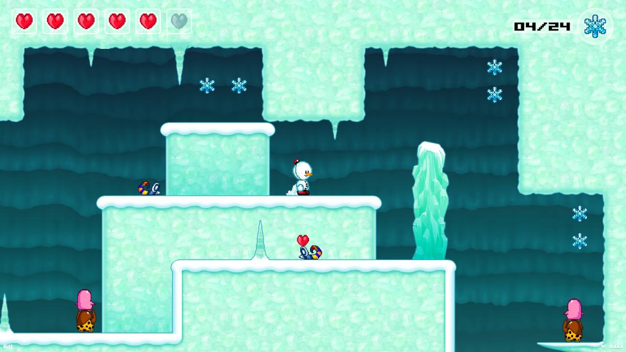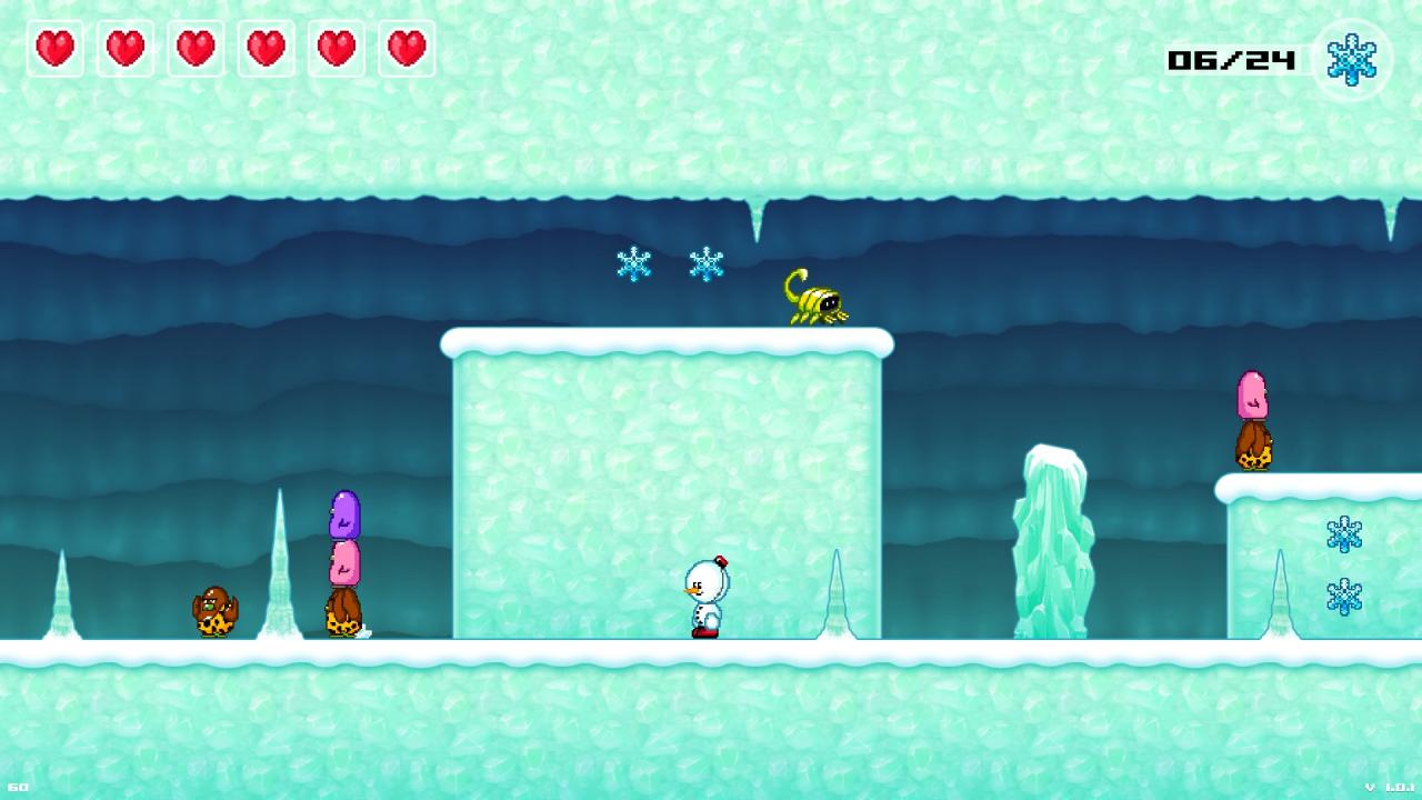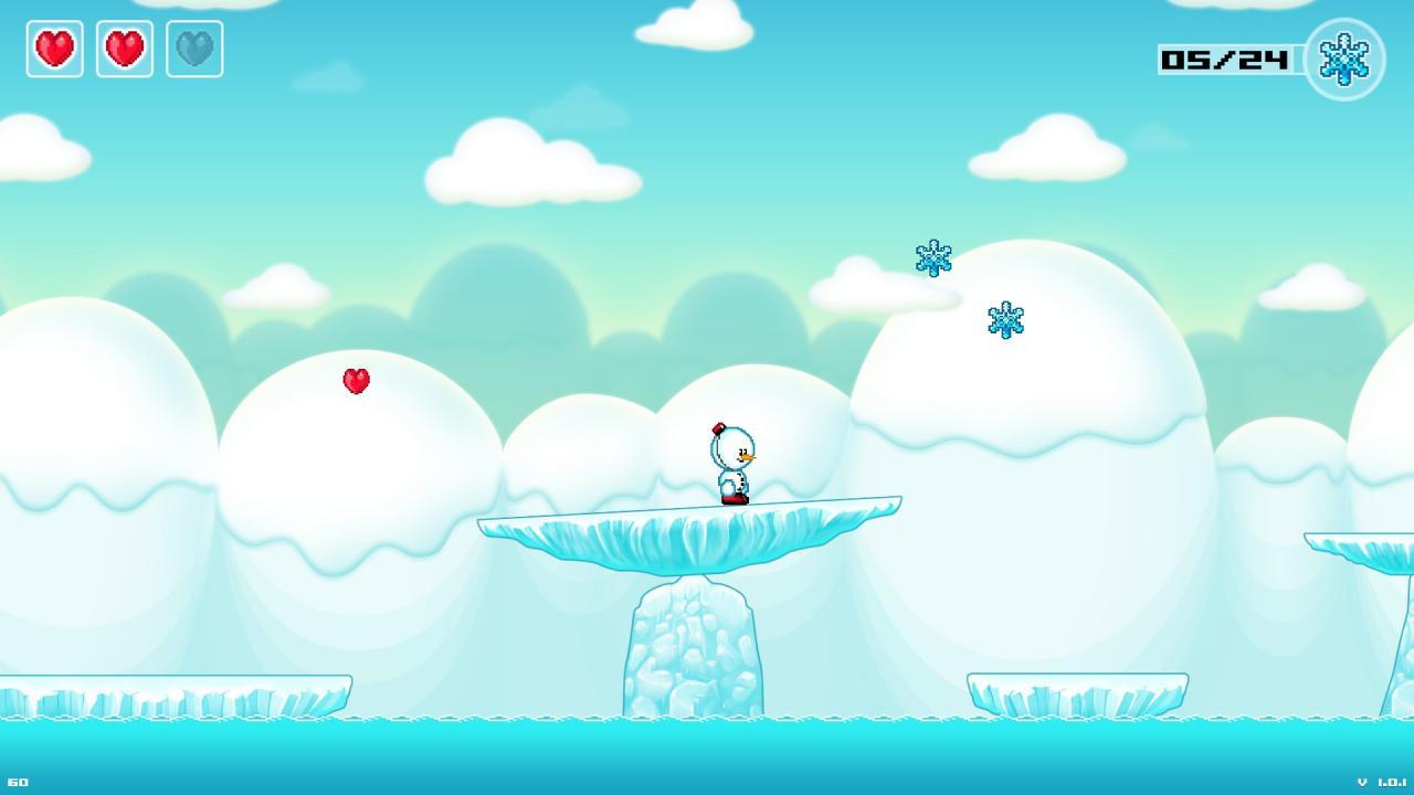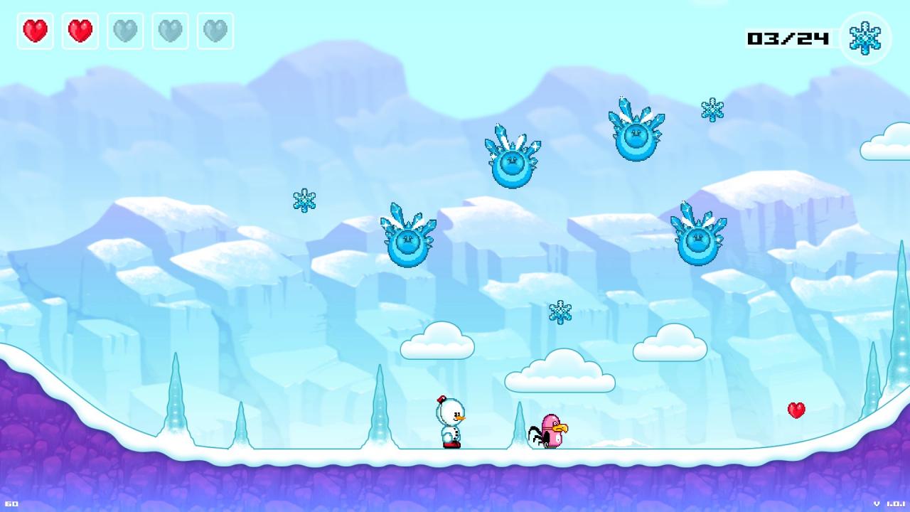 I have included screenshots of all 576 snowflakes- most of them are obvious and straight forward to collect as the game is very linear. There are also screenshots showing the four Heart container locations, and directions to find them. These upgrades are always available on the last level of each area.