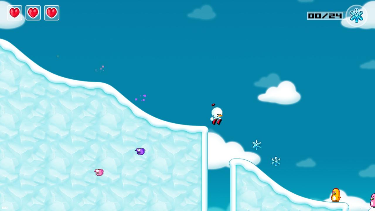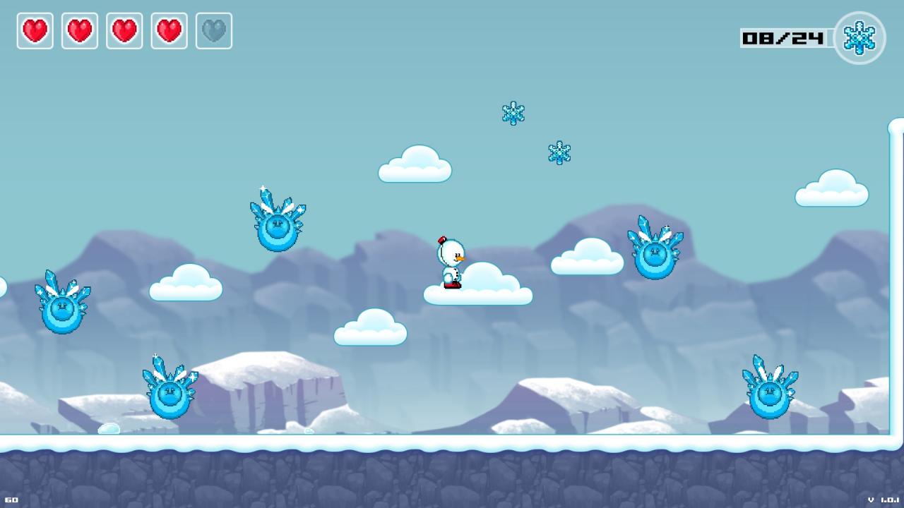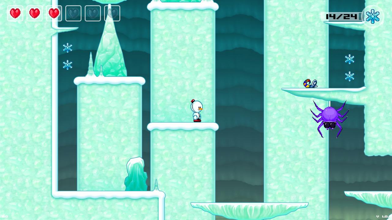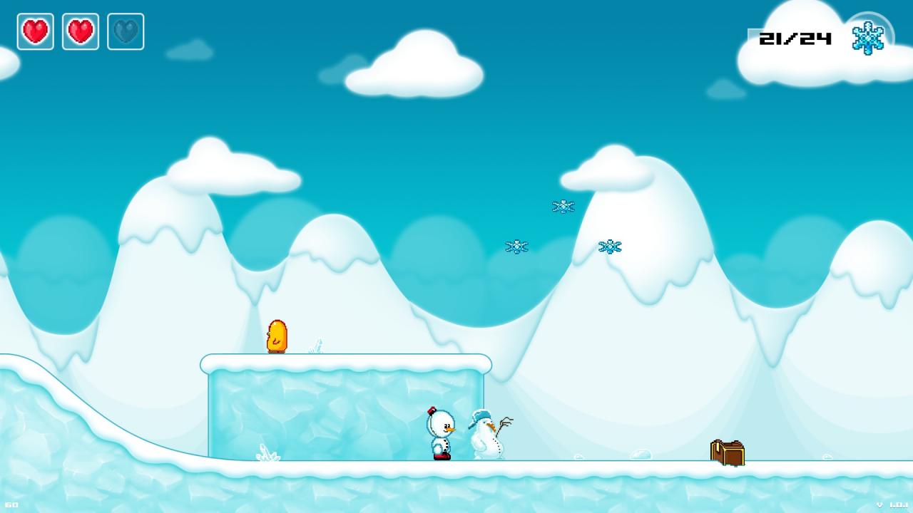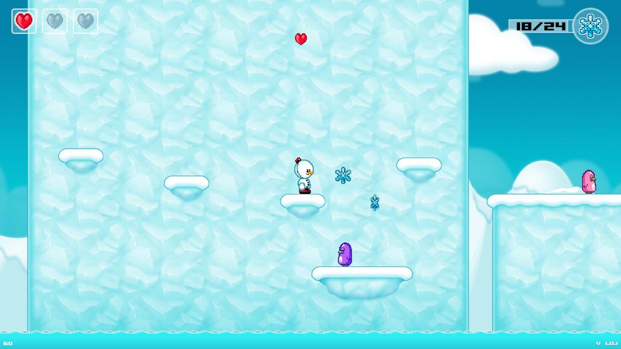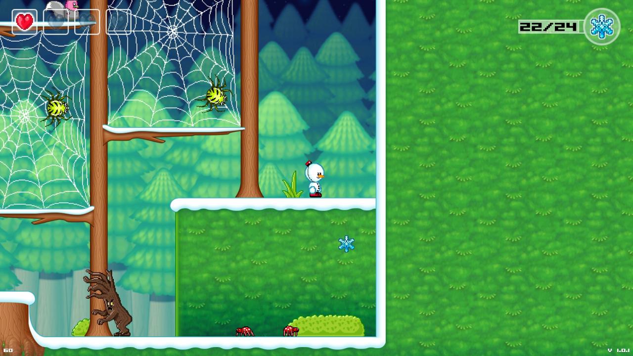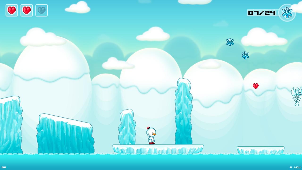 I have included screenshots of all 576 snowflakes- most of them are obvious and straight forward to collect as the game is very linear. There are also screenshots showing the four Heart container locations, and directions to find them. These upgrades are always available on the last level of each area.