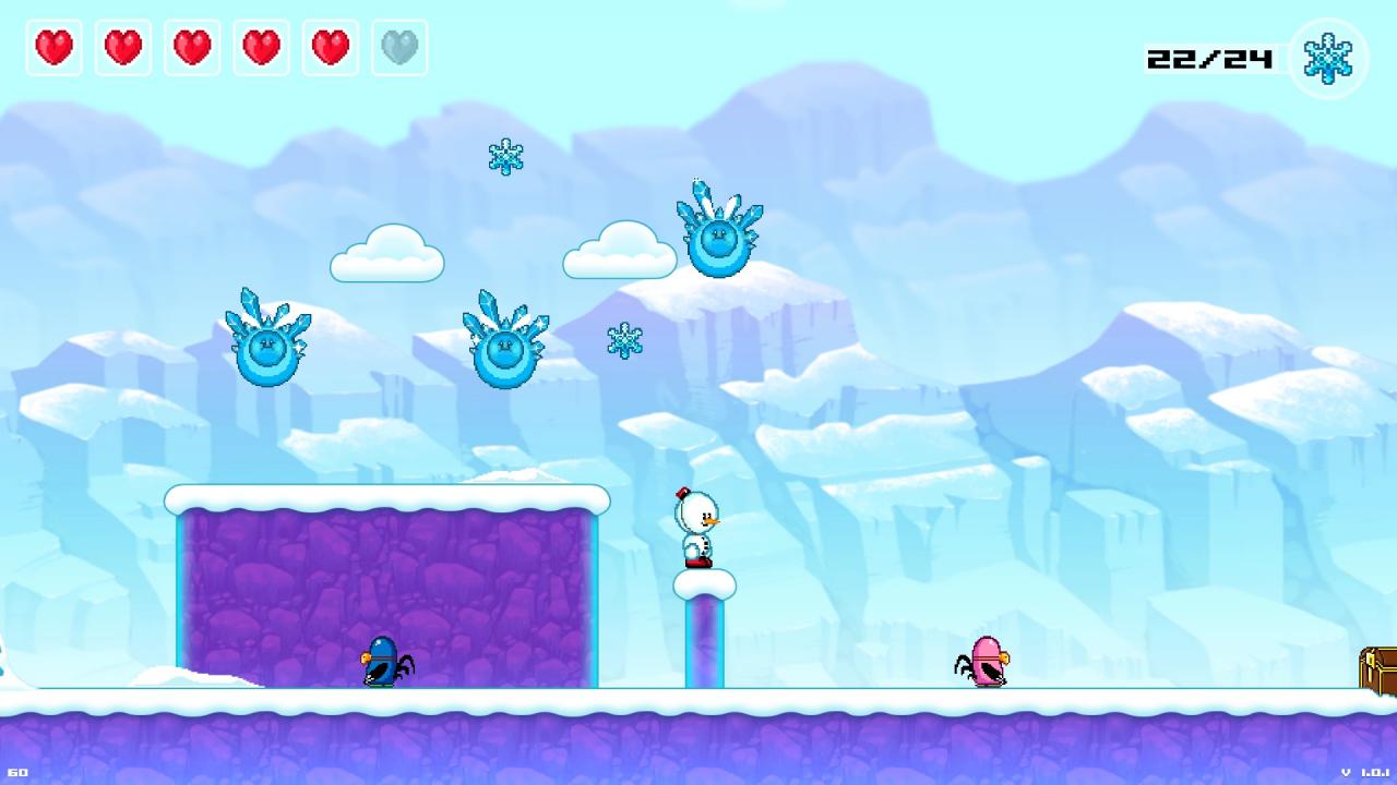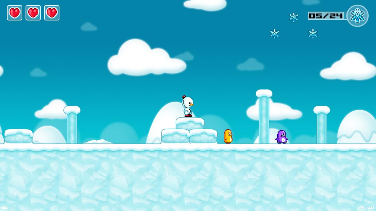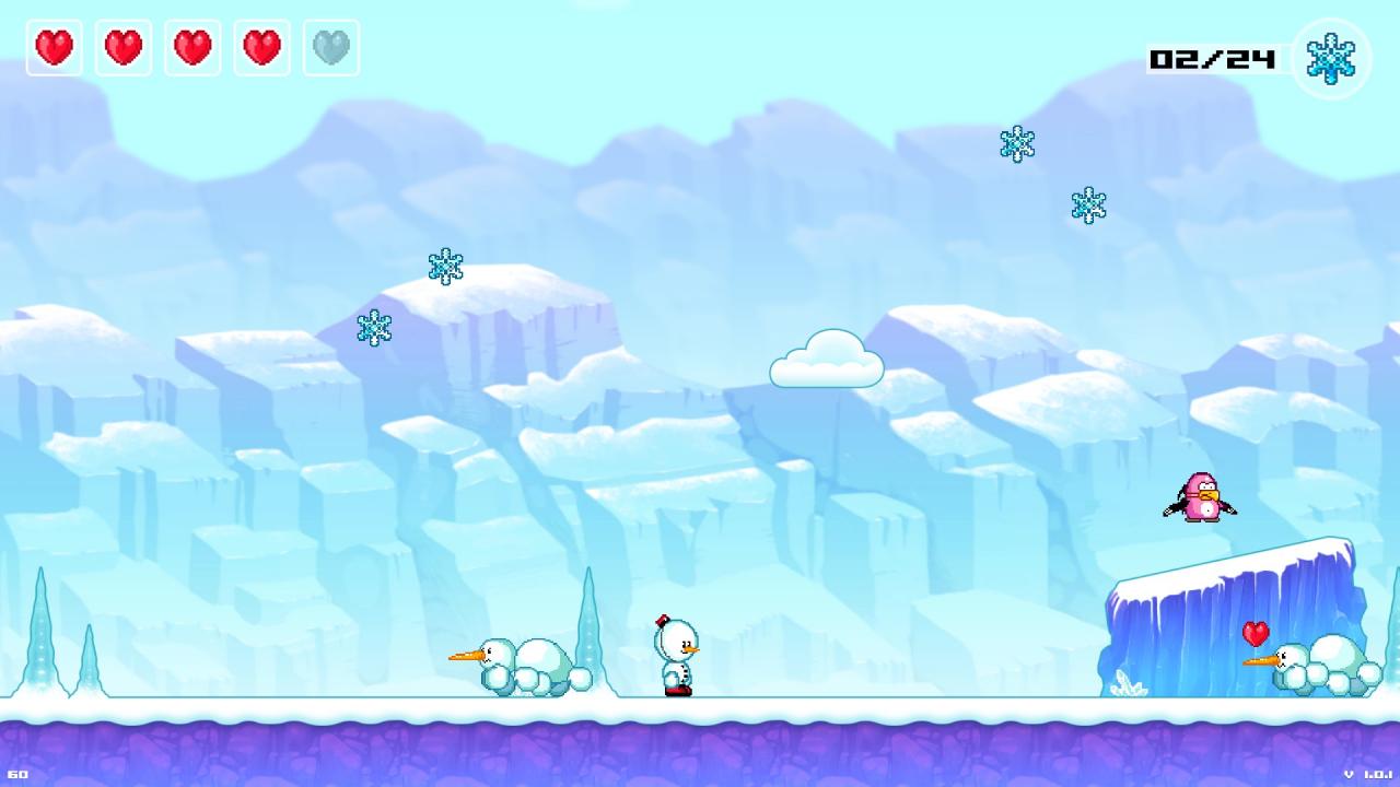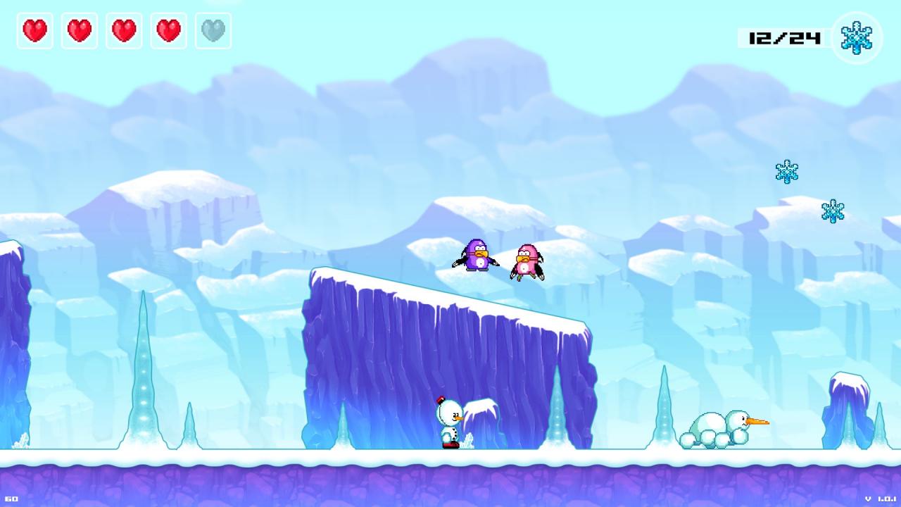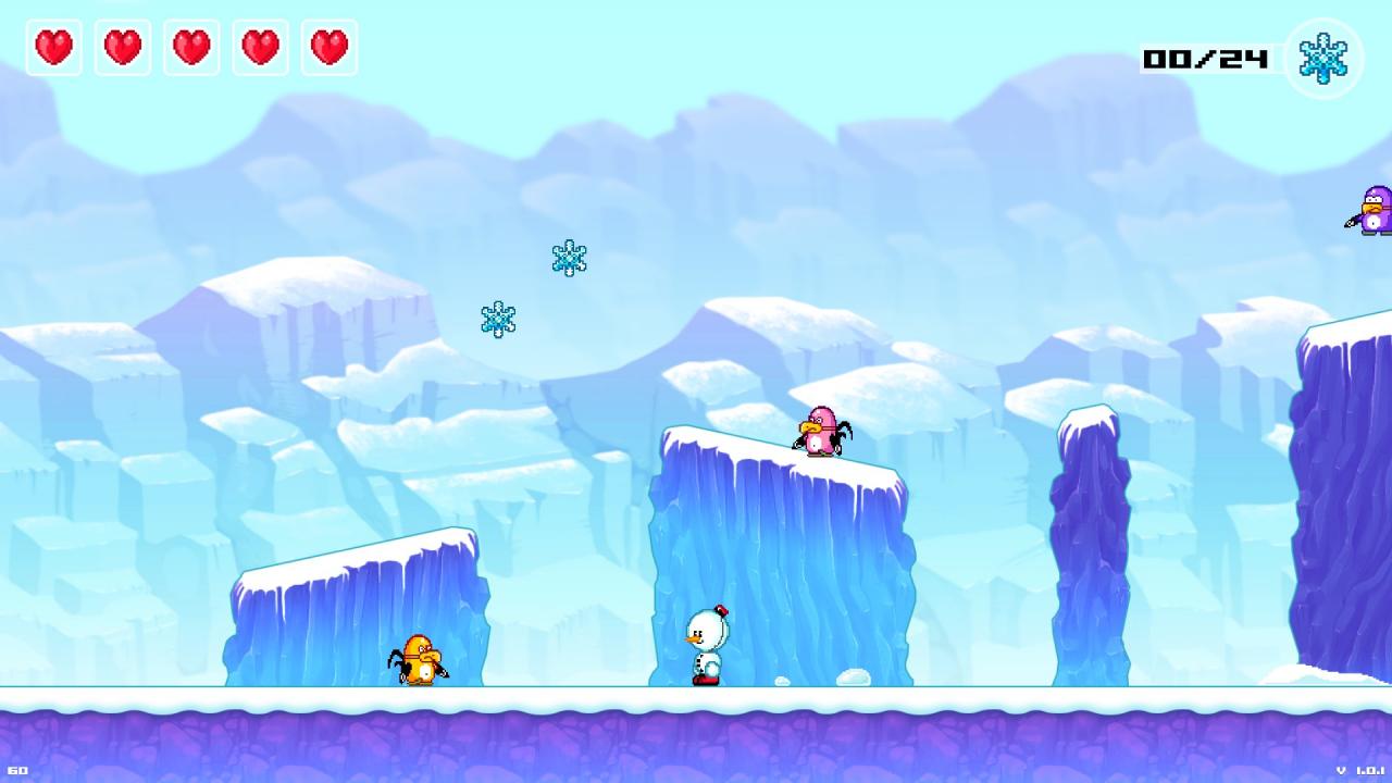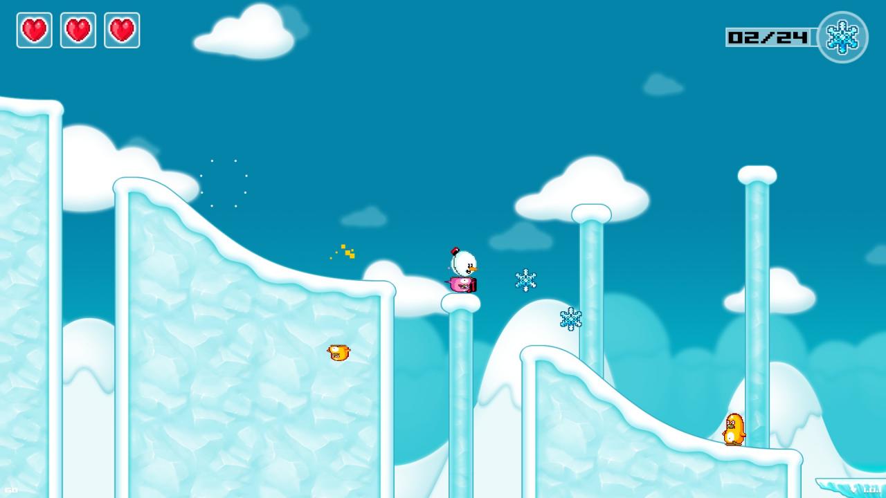I have included screenshots of all 576 snowflakes- most of them are obvious and straight forward to collect as the game is very linear. There are also screenshots showing the four Heart container locations, and directions to find them. These upgrades are always available on the last level of each area.