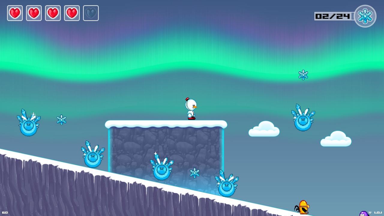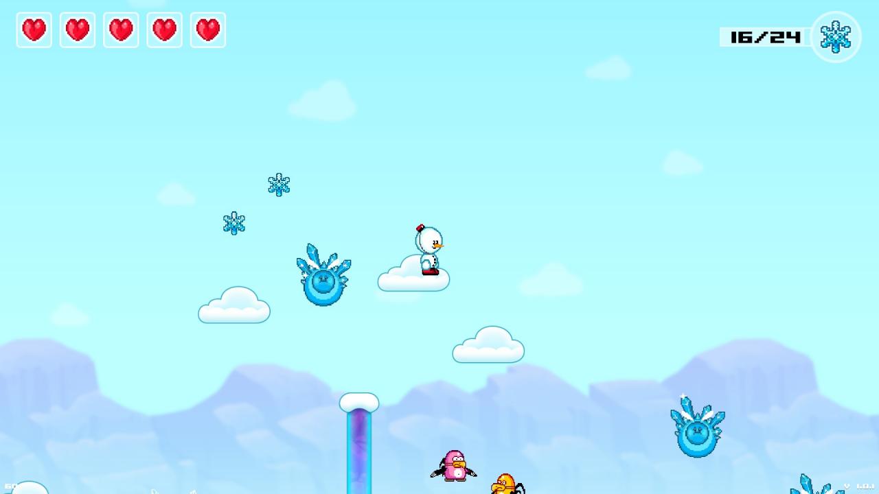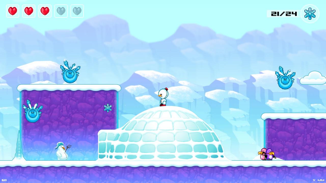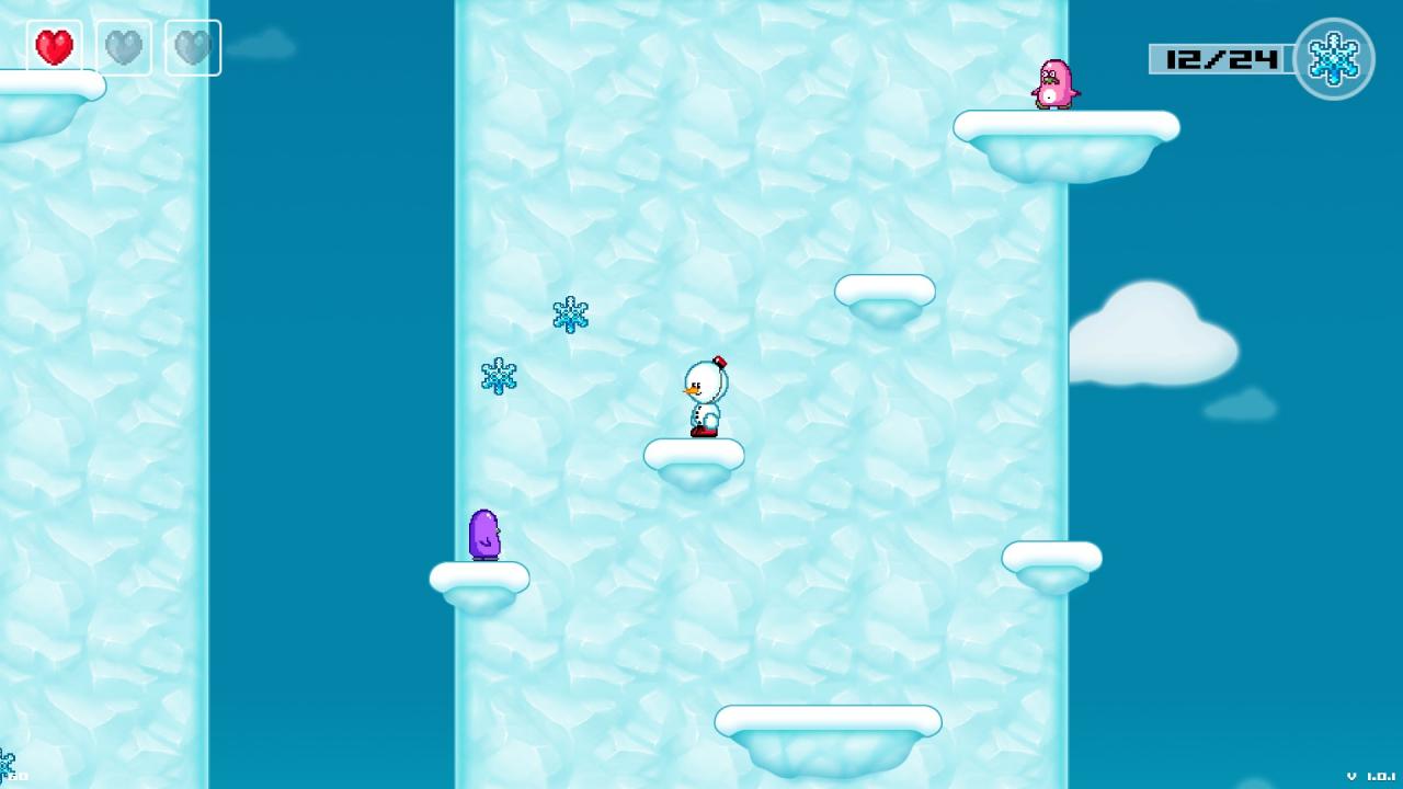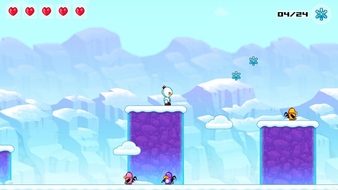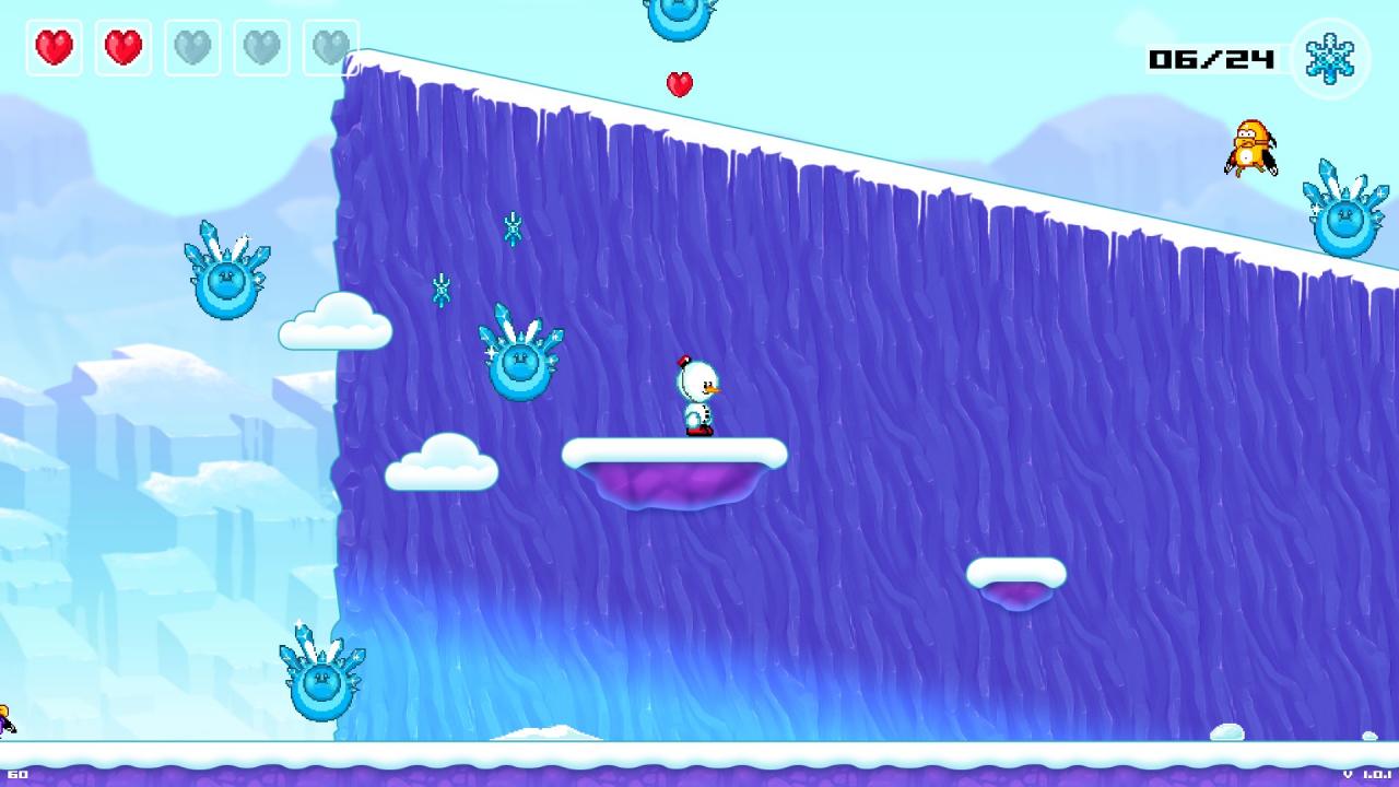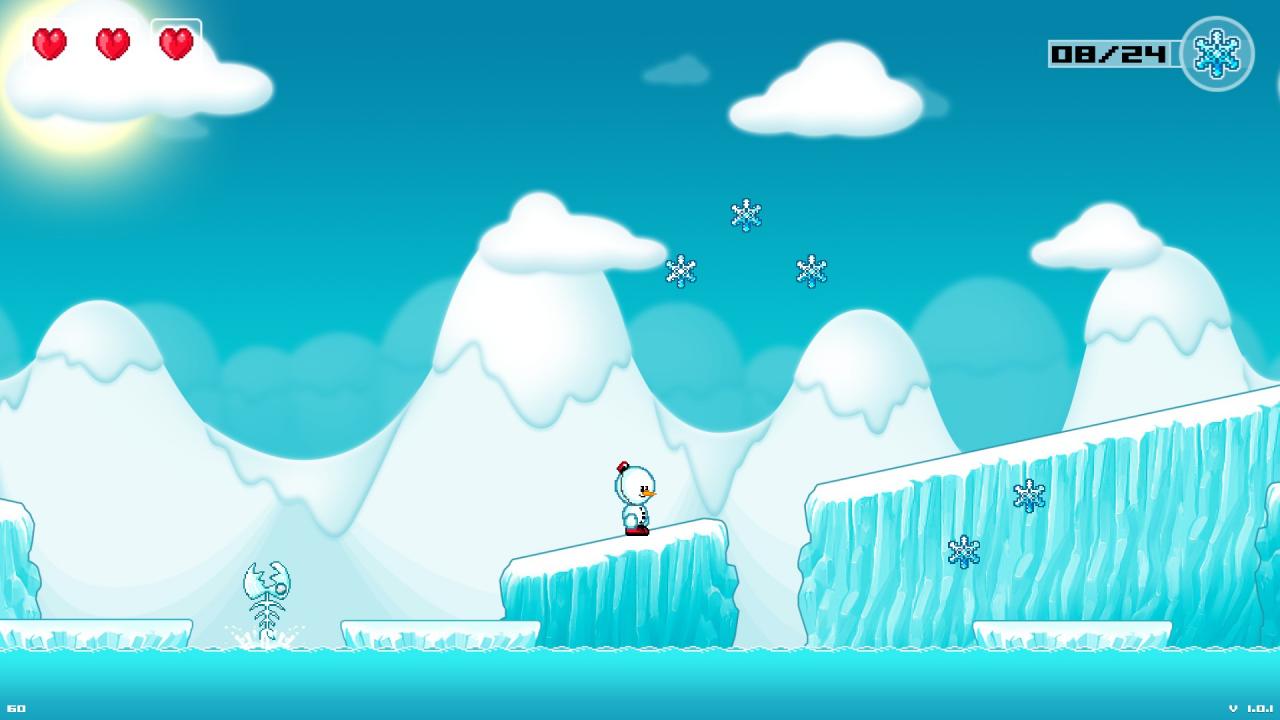 I have included screenshots of all 576 snowflakes- most of them are obvious and straight forward to collect as the game is very linear. There are also screenshots showing the four Heart container locations, and directions to find them. These upgrades are always available on the last level of each area.