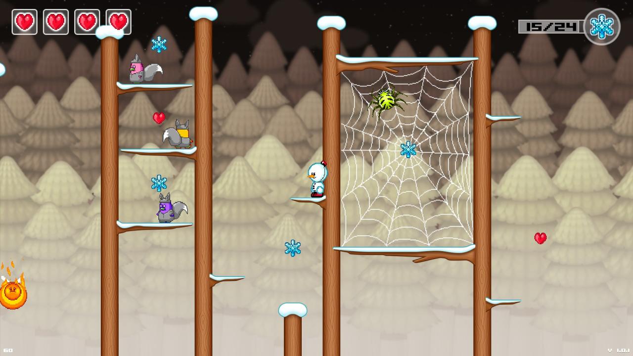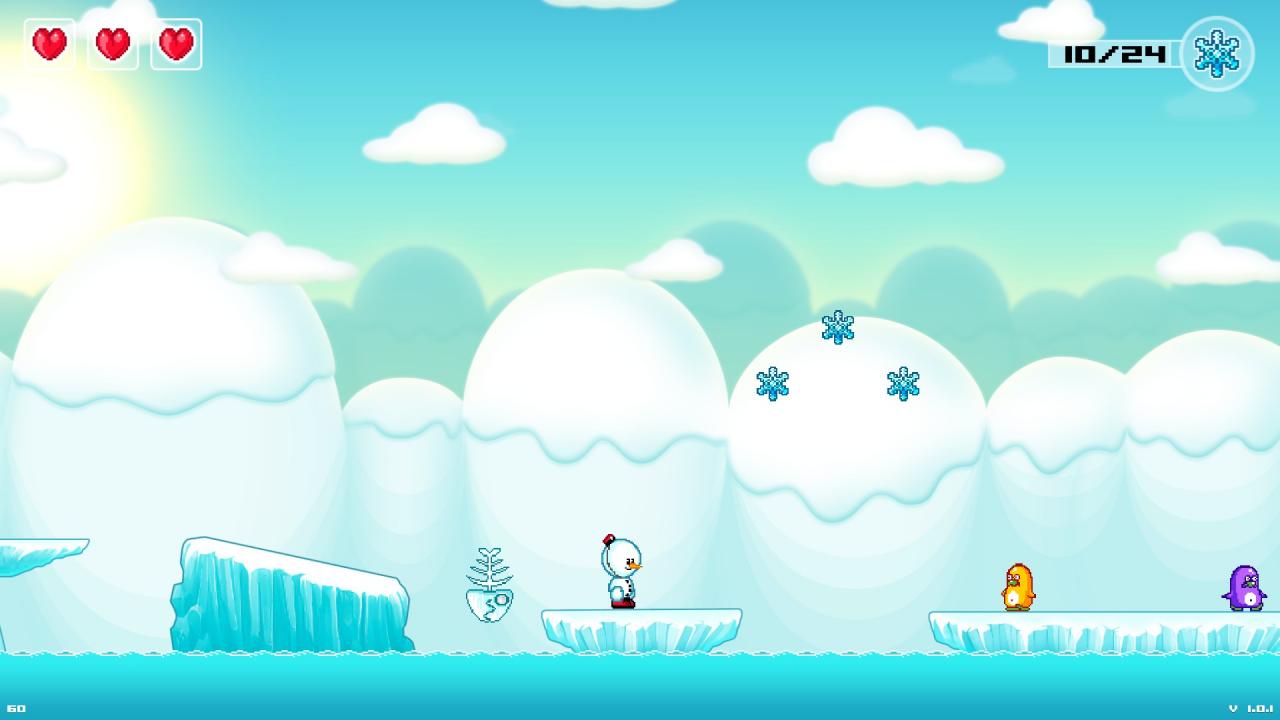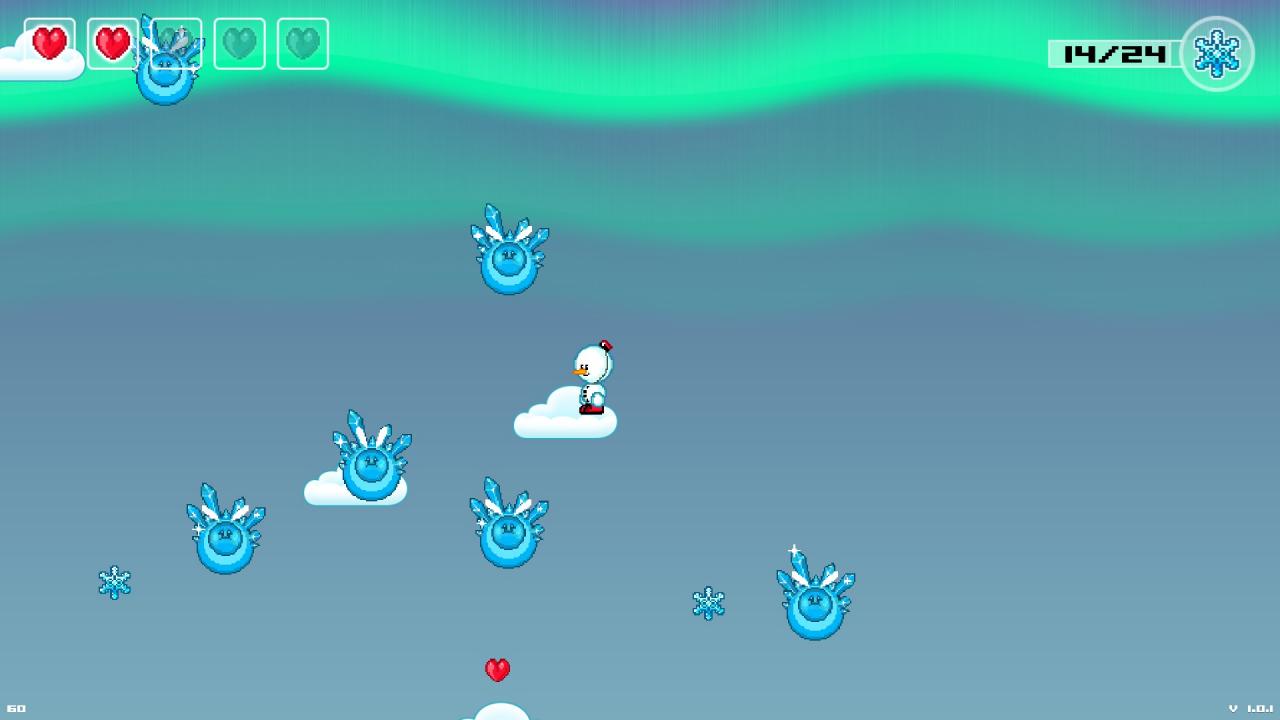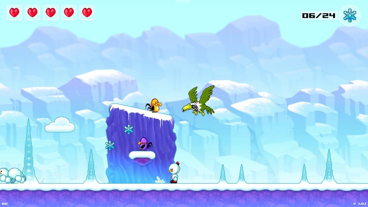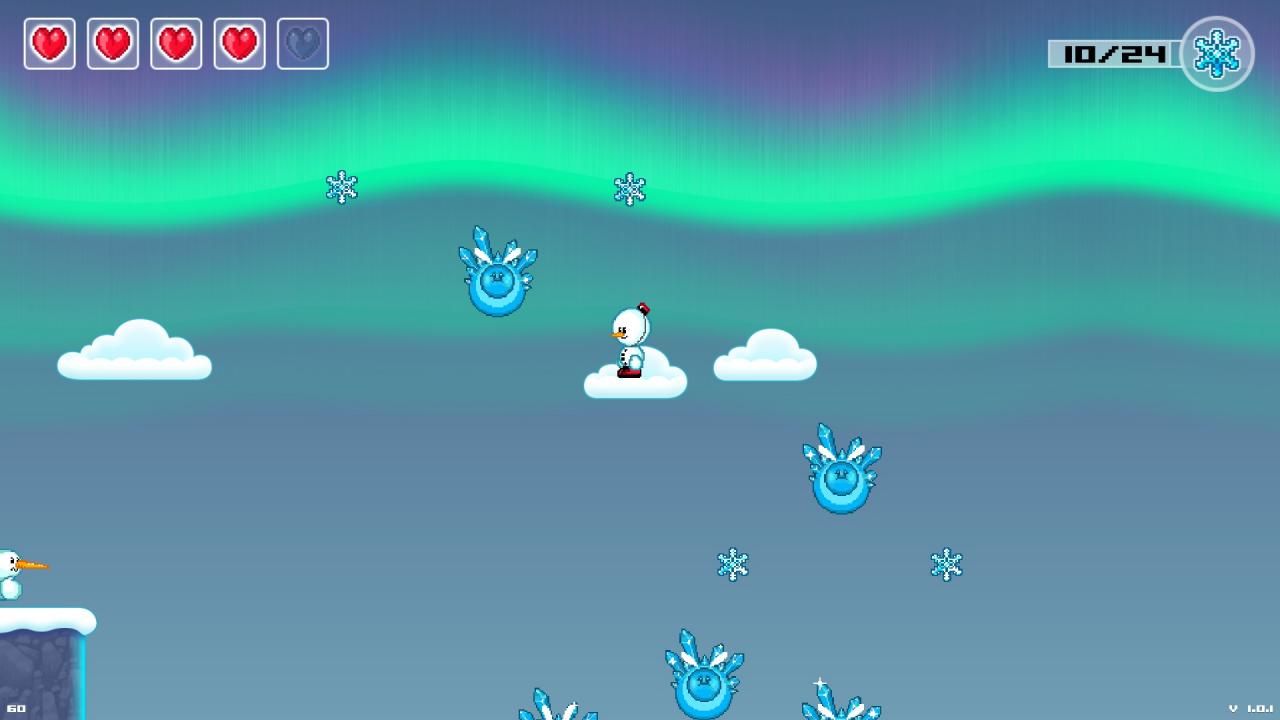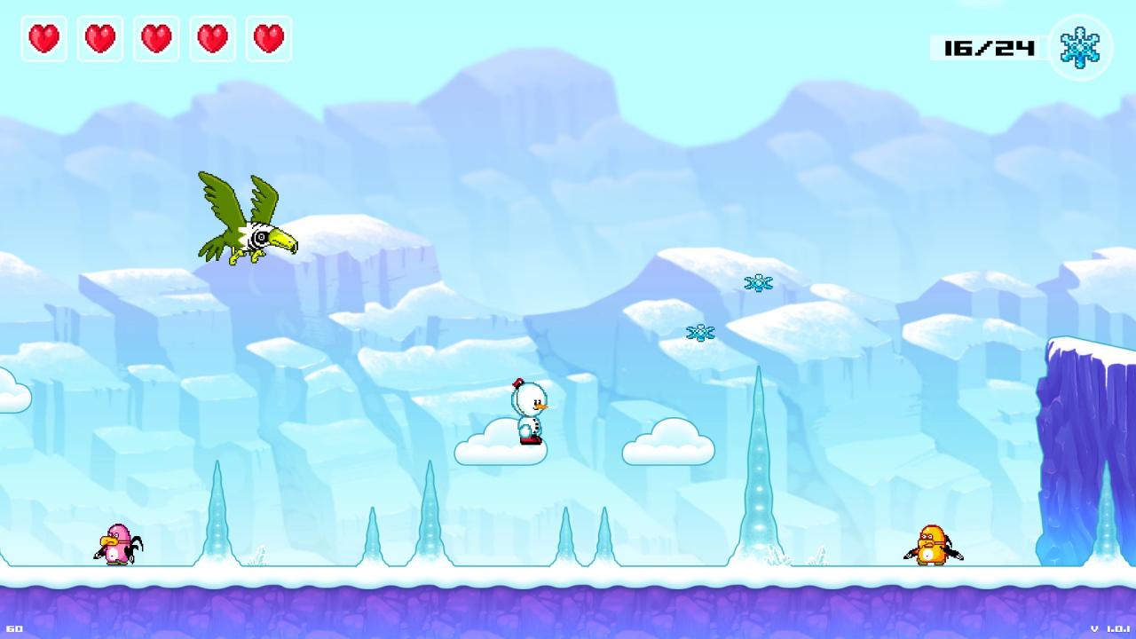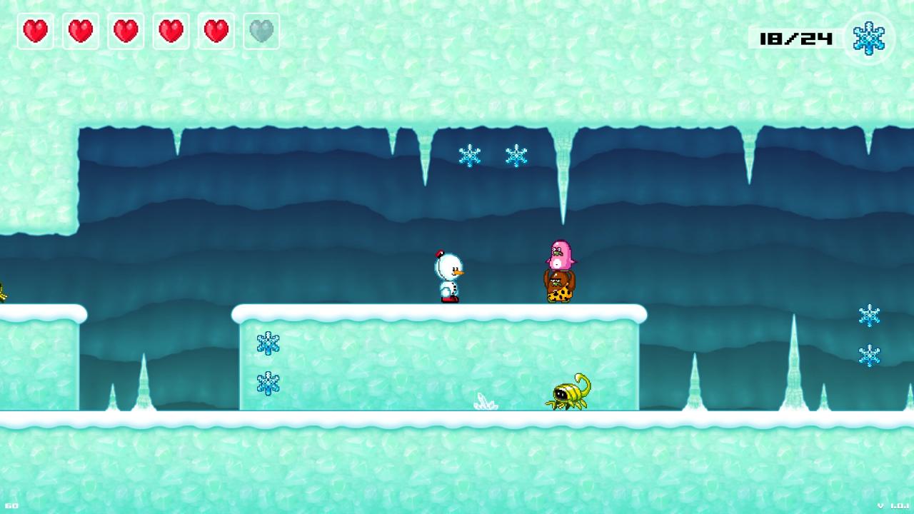 I have included screenshots of all 576 snowflakes- most of them are obvious and straight forward to collect as the game is very linear. There are also screenshots showing the four Heart container locations, and directions to find them. These upgrades are always available on the last level of each area.