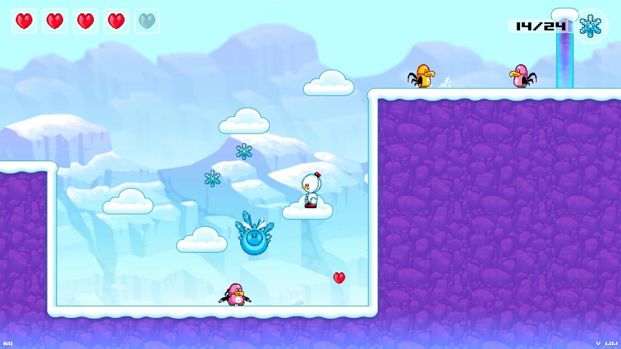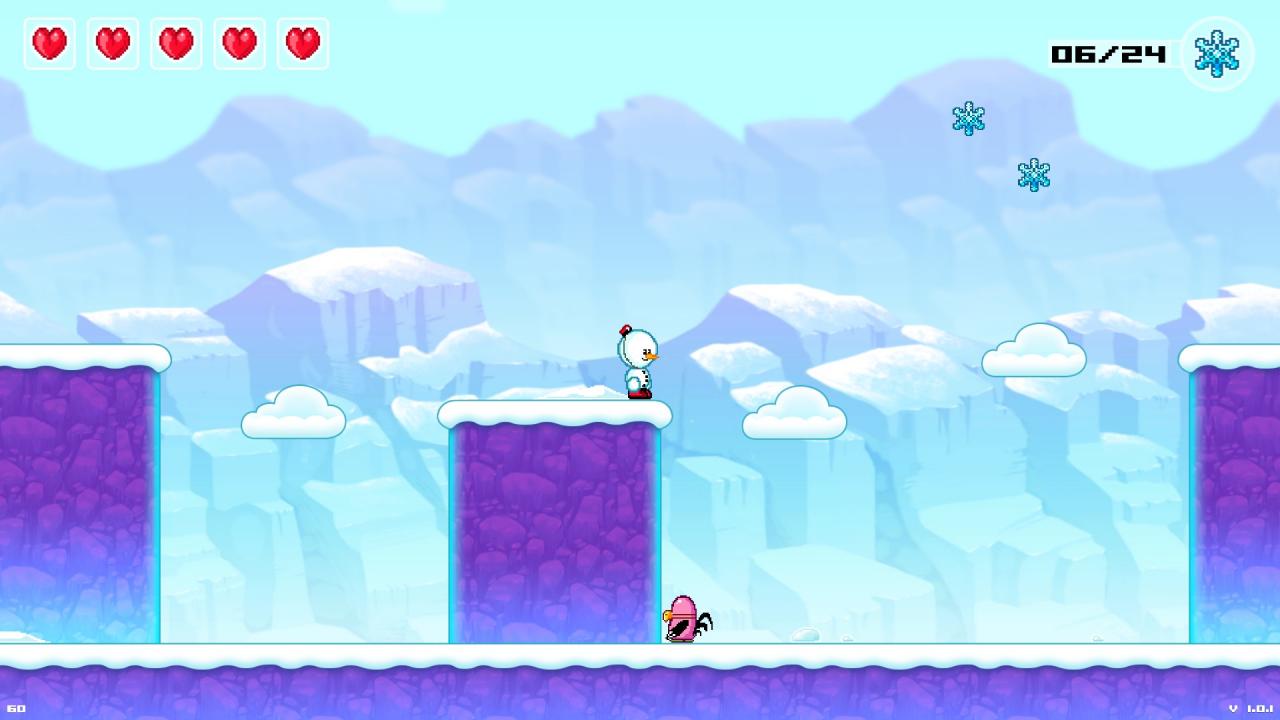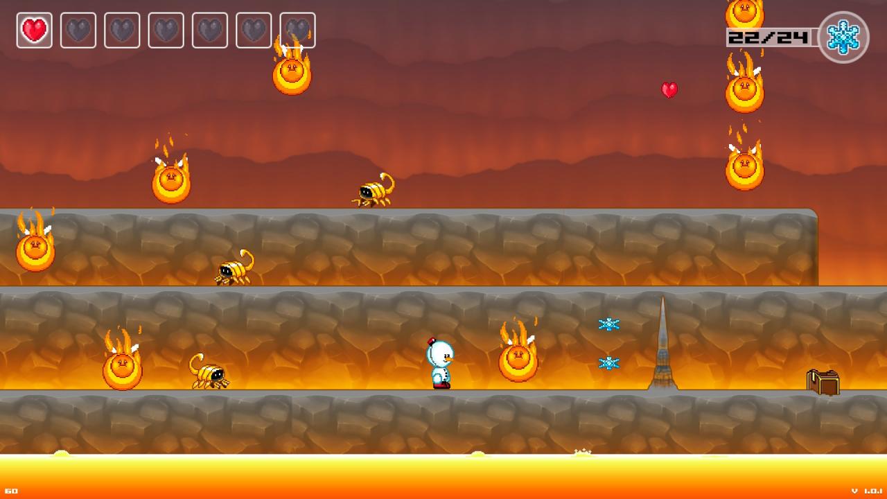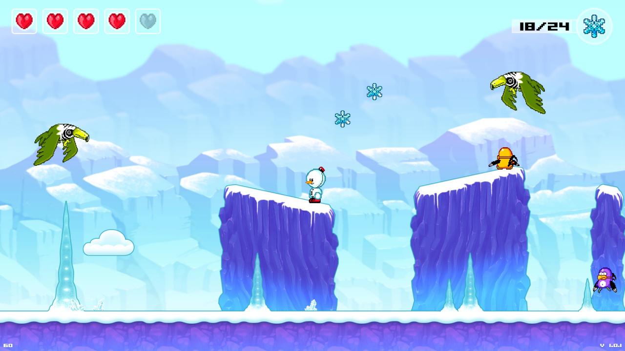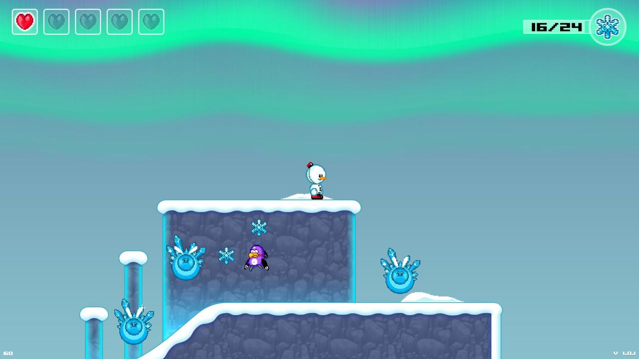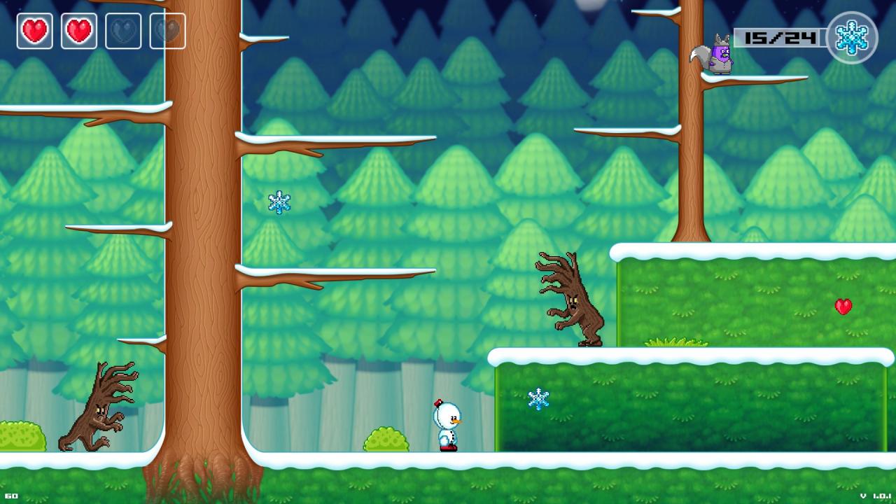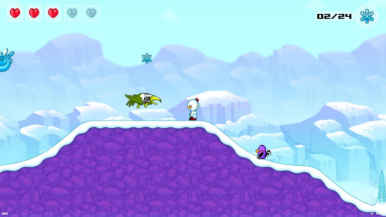 I have included screenshots of all 576 snowflakes- most of them are obvious and straight forward to collect as the game is very linear. There are also screenshots showing the four Heart container locations, and directions to find them. These upgrades are always available on the last level of each area.