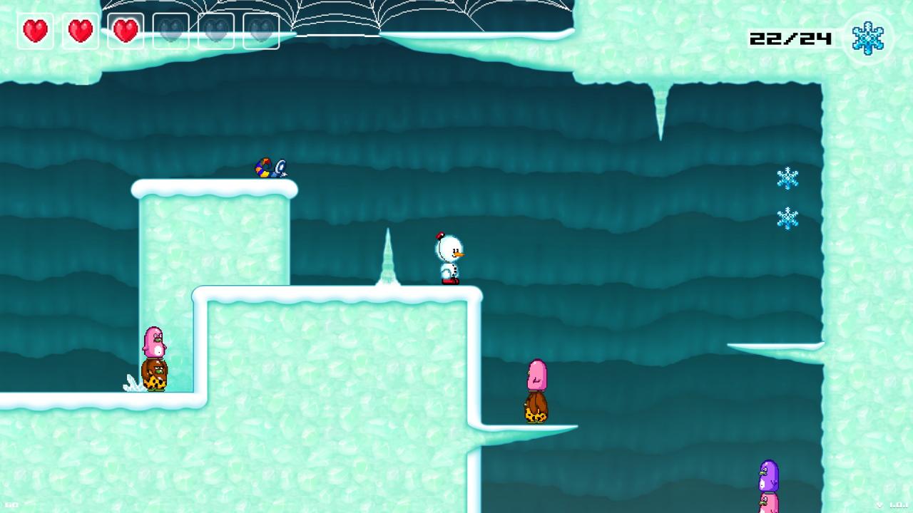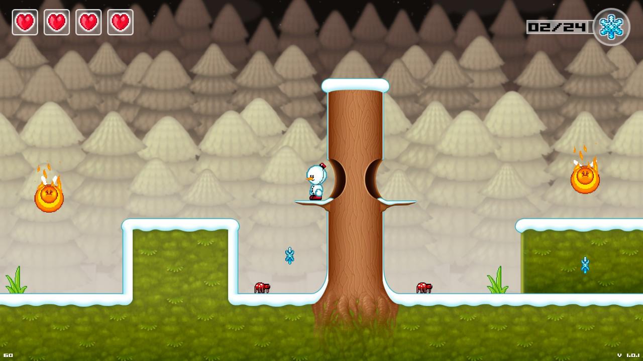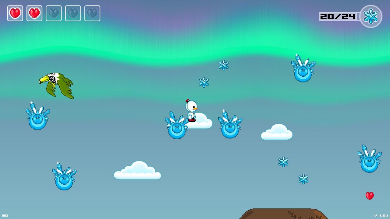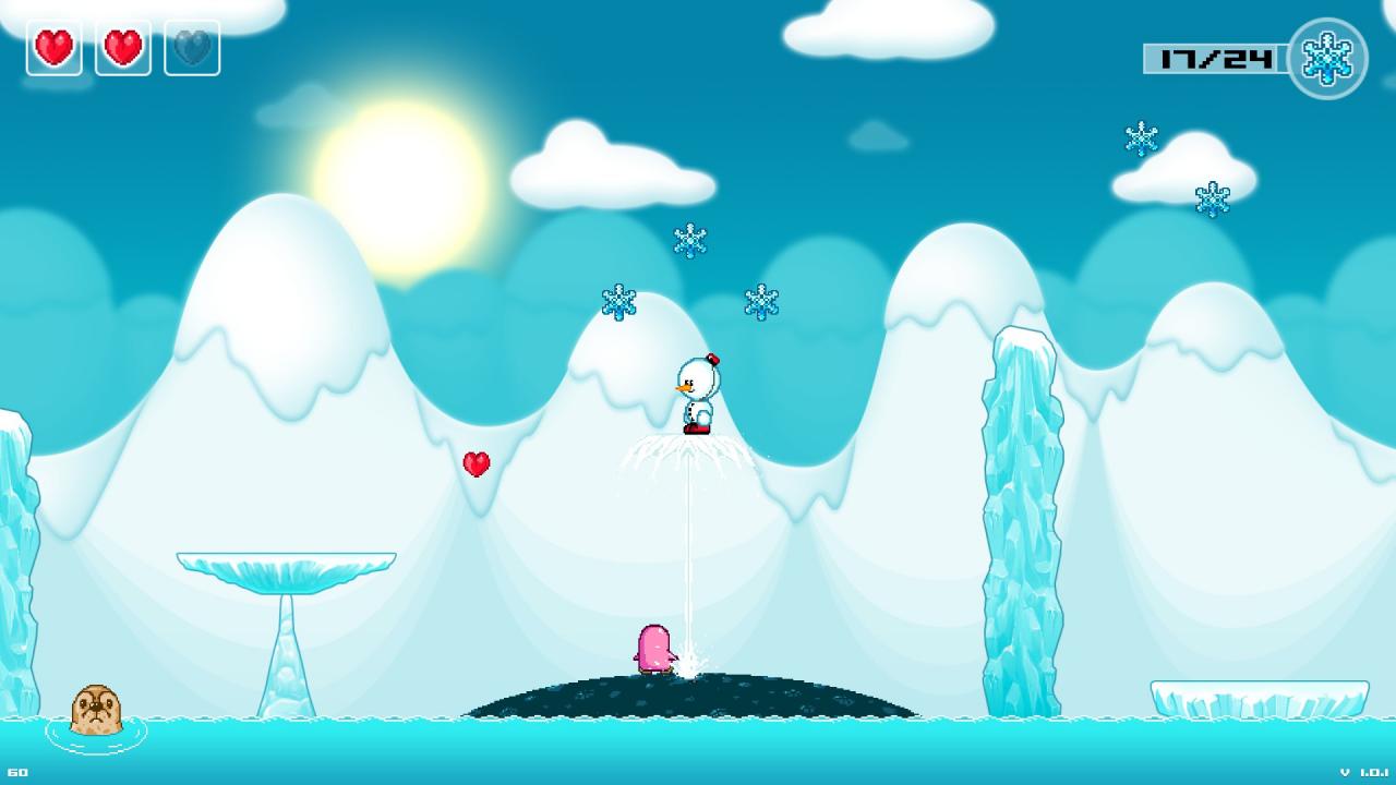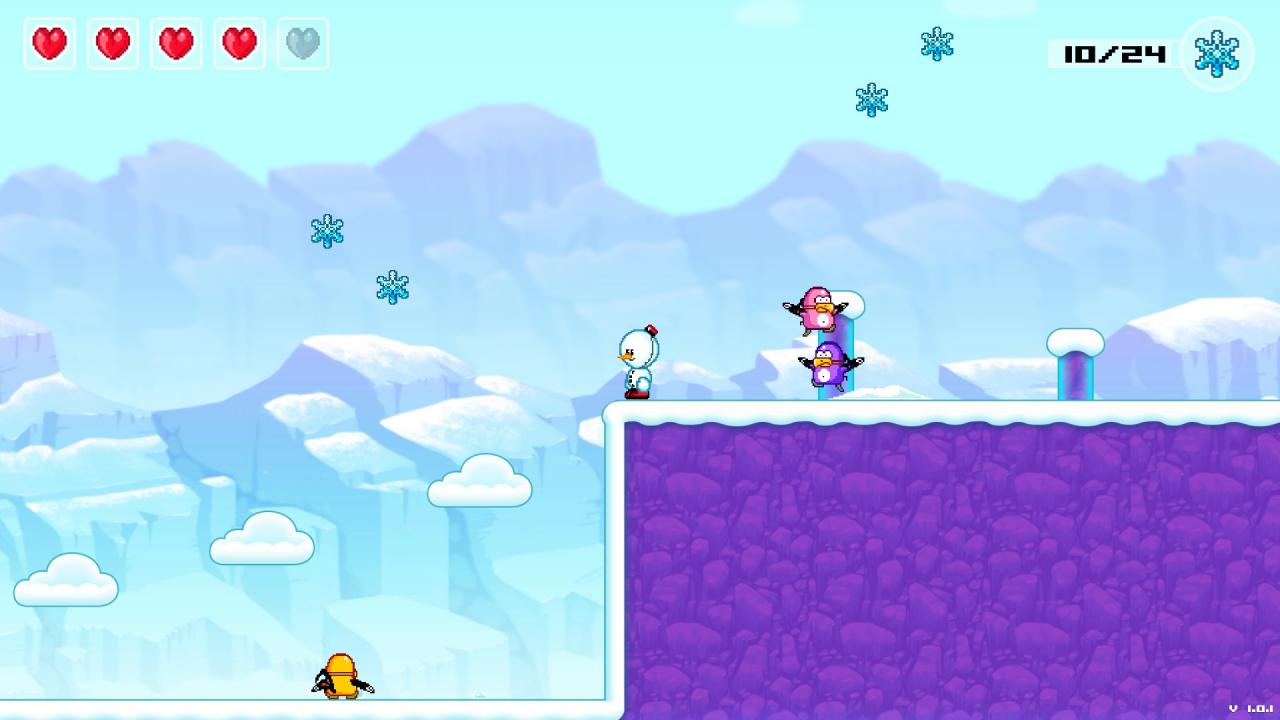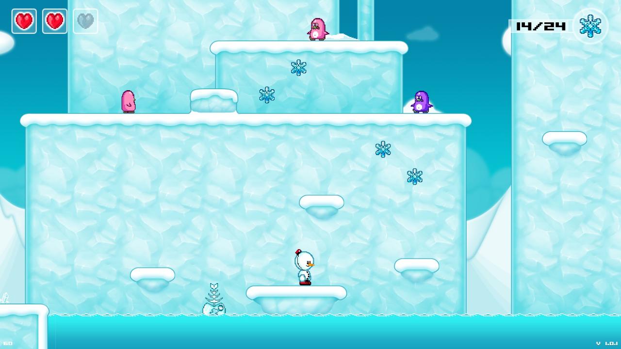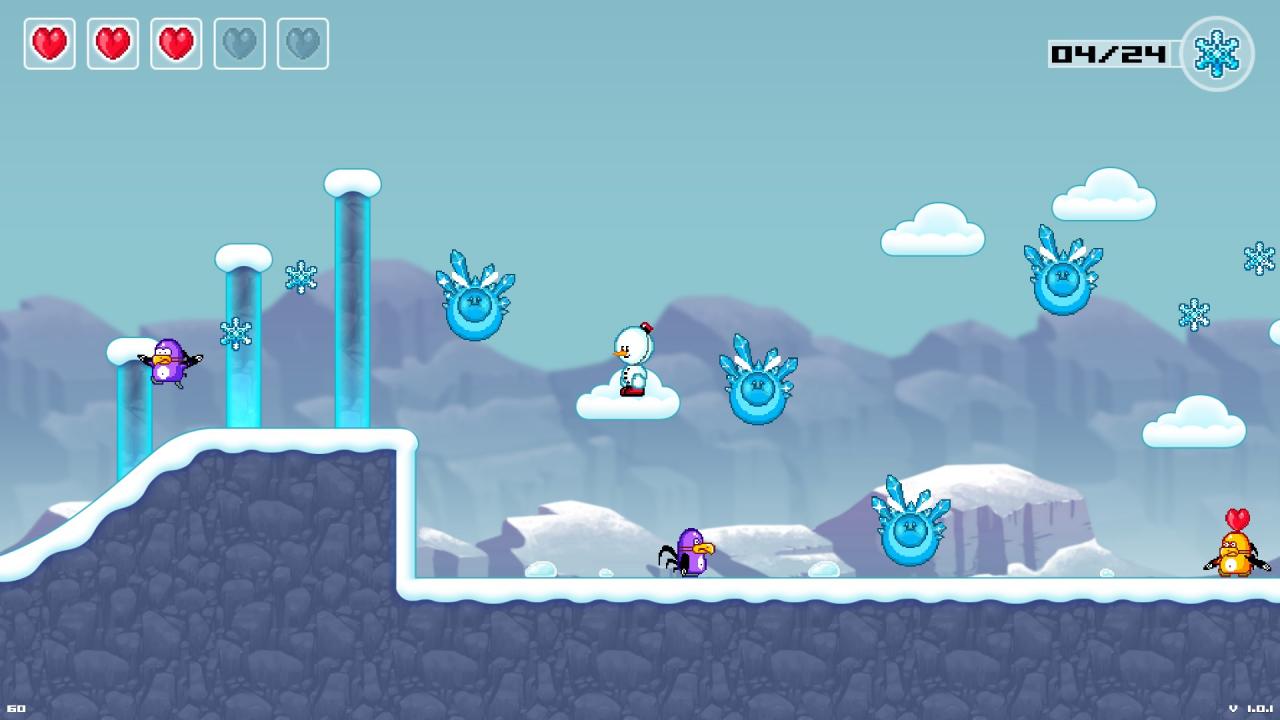 I have included screenshots of all 576 snowflakes- most of them are obvious and straight forward to collect as the game is very linear. There are also screenshots showing the four Heart container locations, and directions to find them. These upgrades are always available on the last level of each area.