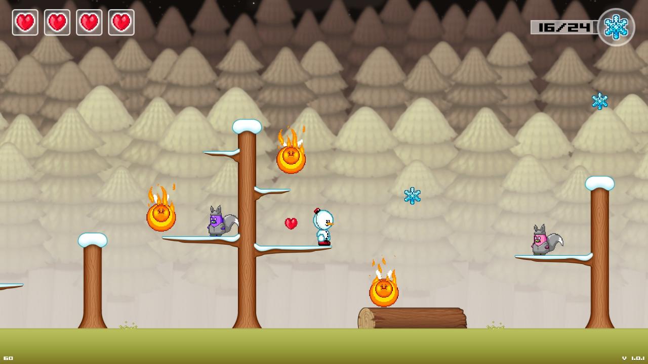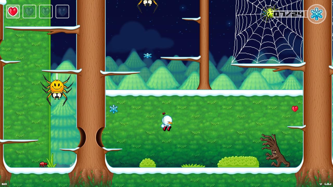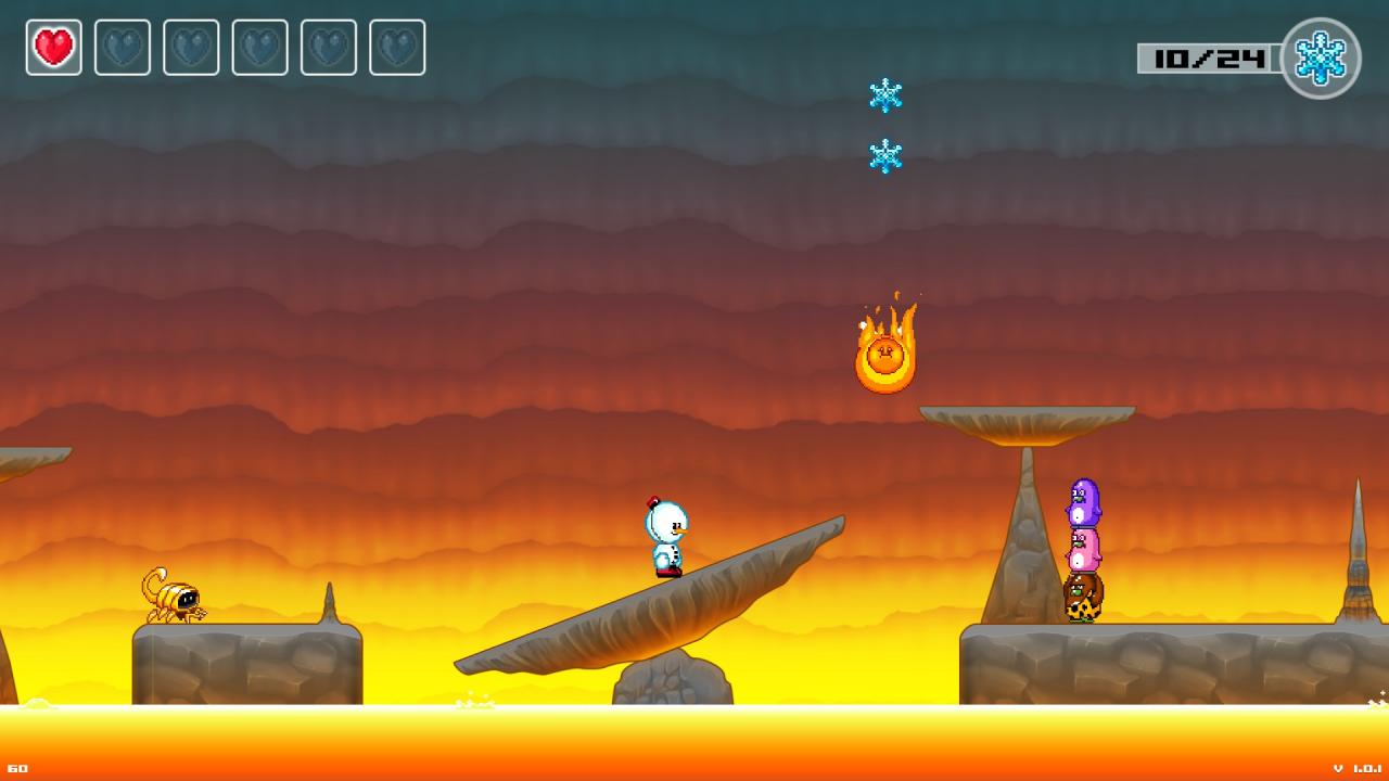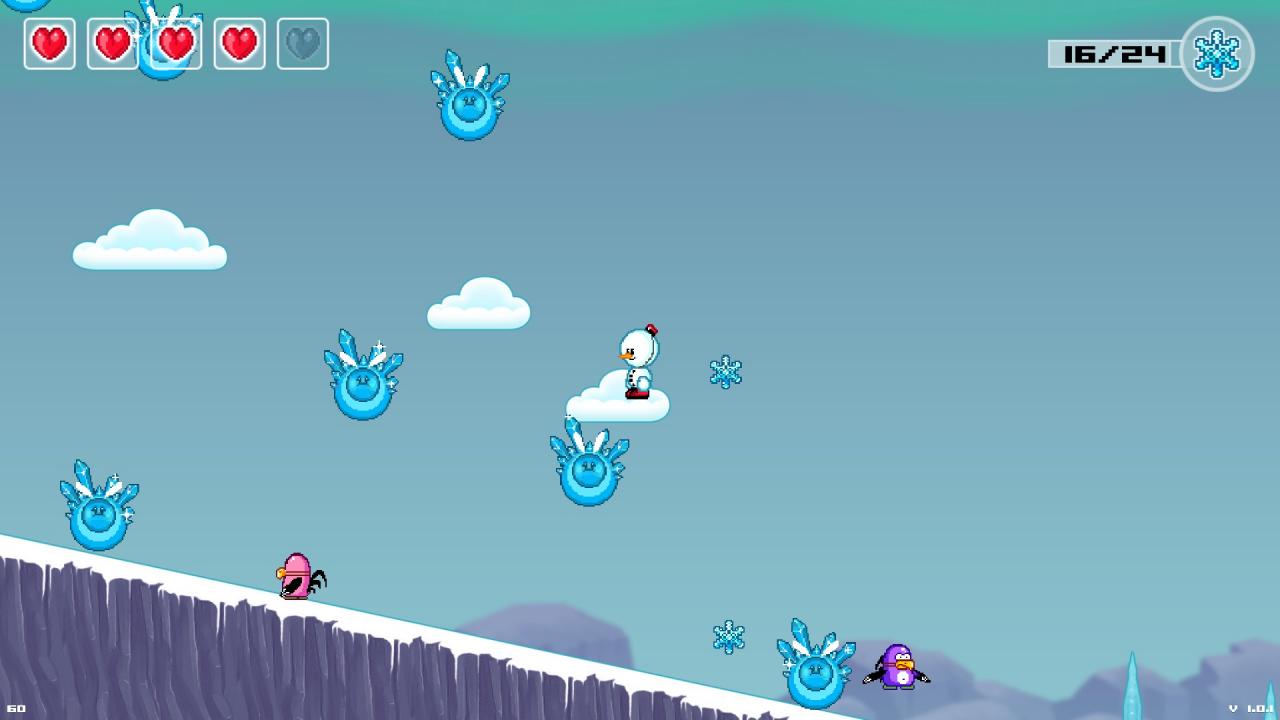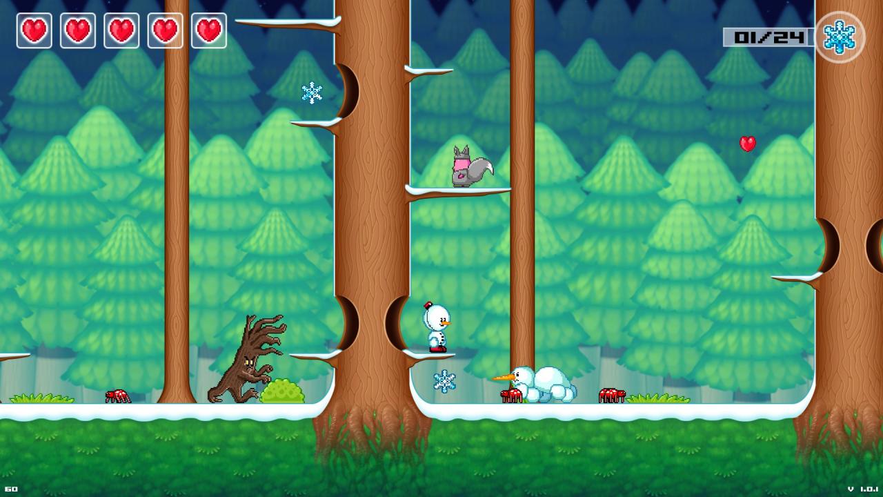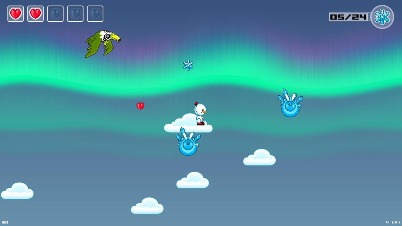 I have included screenshots of all 576 snowflakes- most of them are obvious and straight forward to collect as the game is very linear. There are also screenshots showing the four Heart container locations, and directions to find them. These upgrades are always available on the last level of each area.