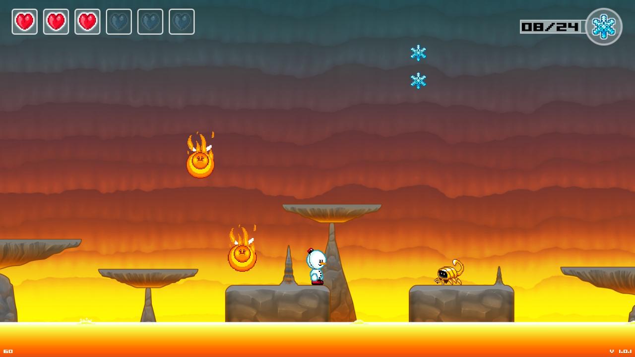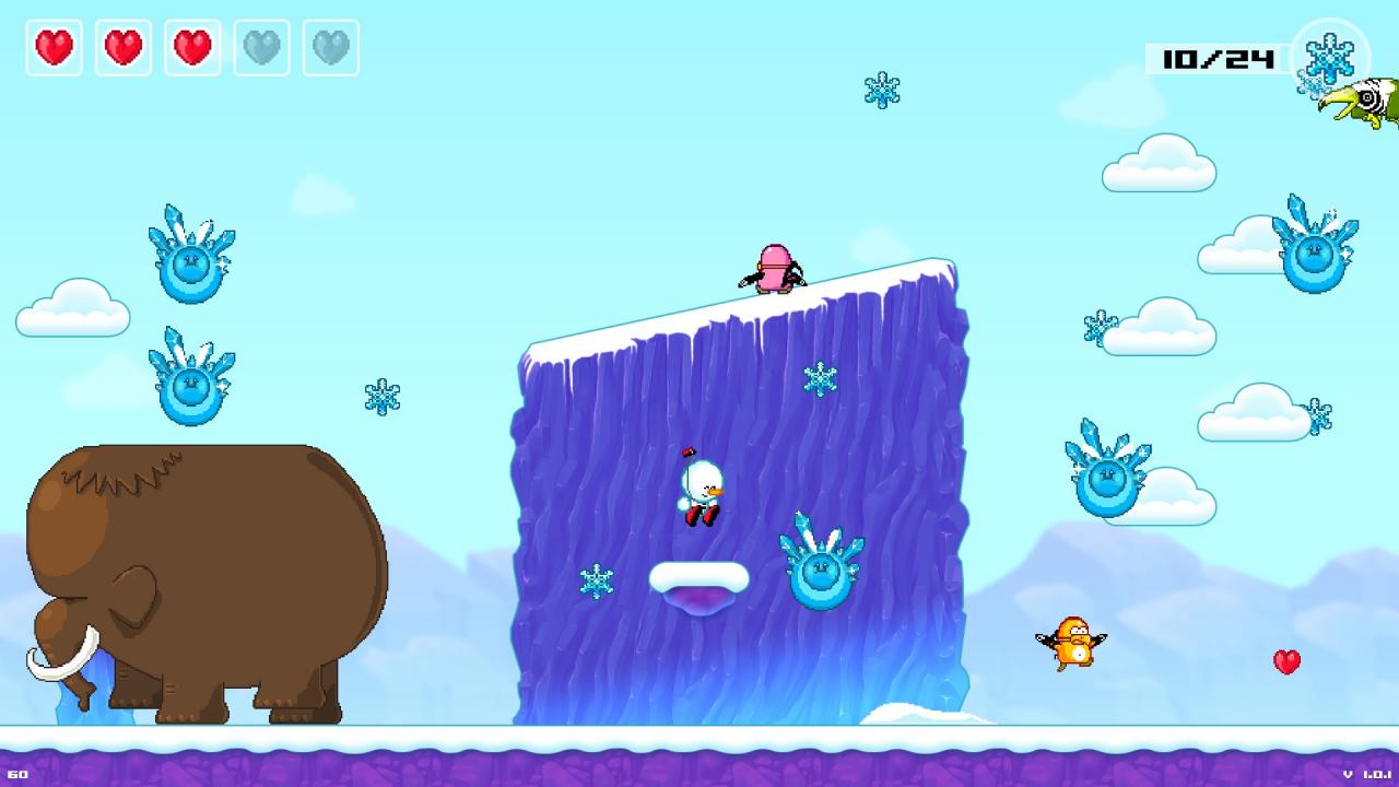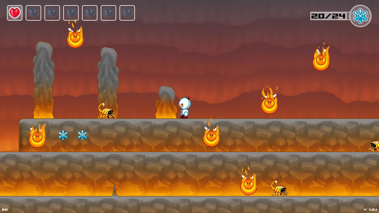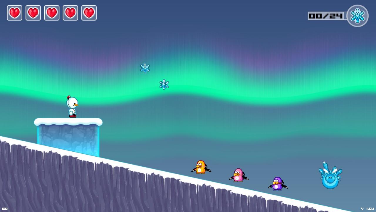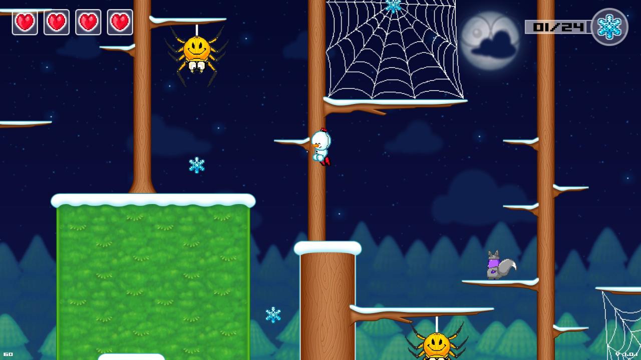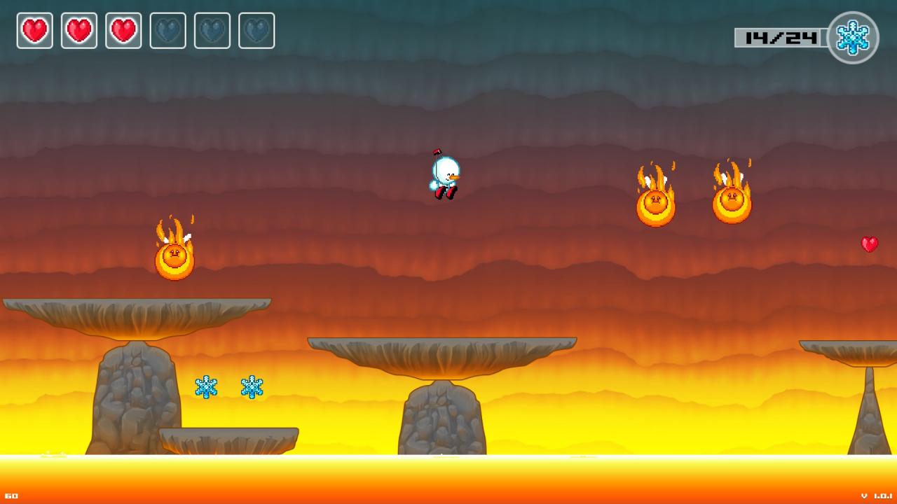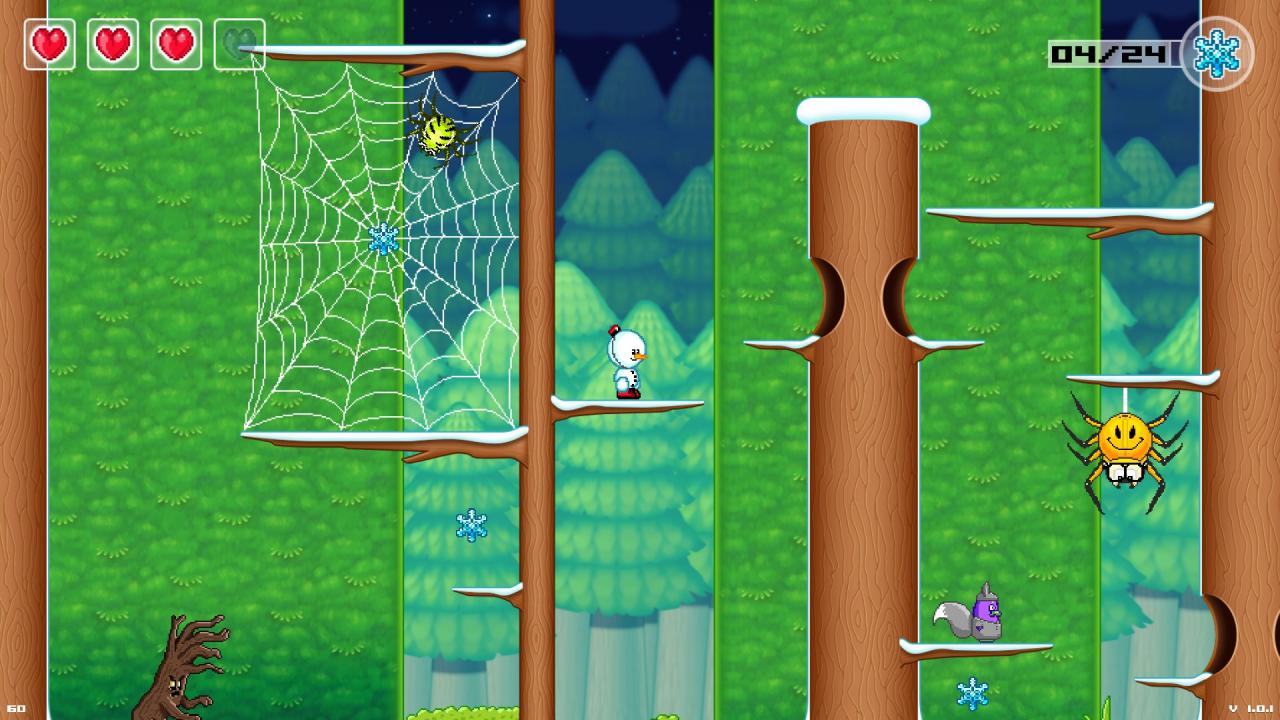 I have included screenshots of all 576 snowflakes- most of them are obvious and straight forward to collect as the game is very linear. There are also screenshots showing the four Heart container locations, and directions to find them. These upgrades are always available on the last level of each area.