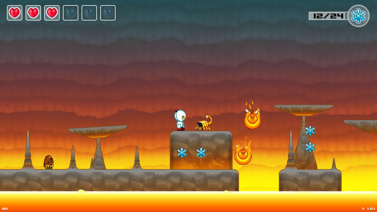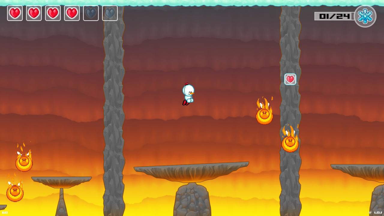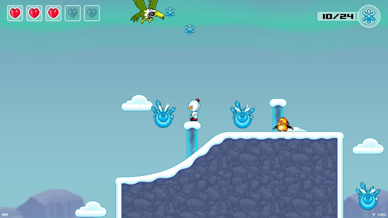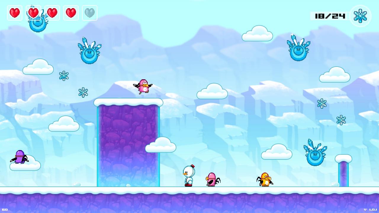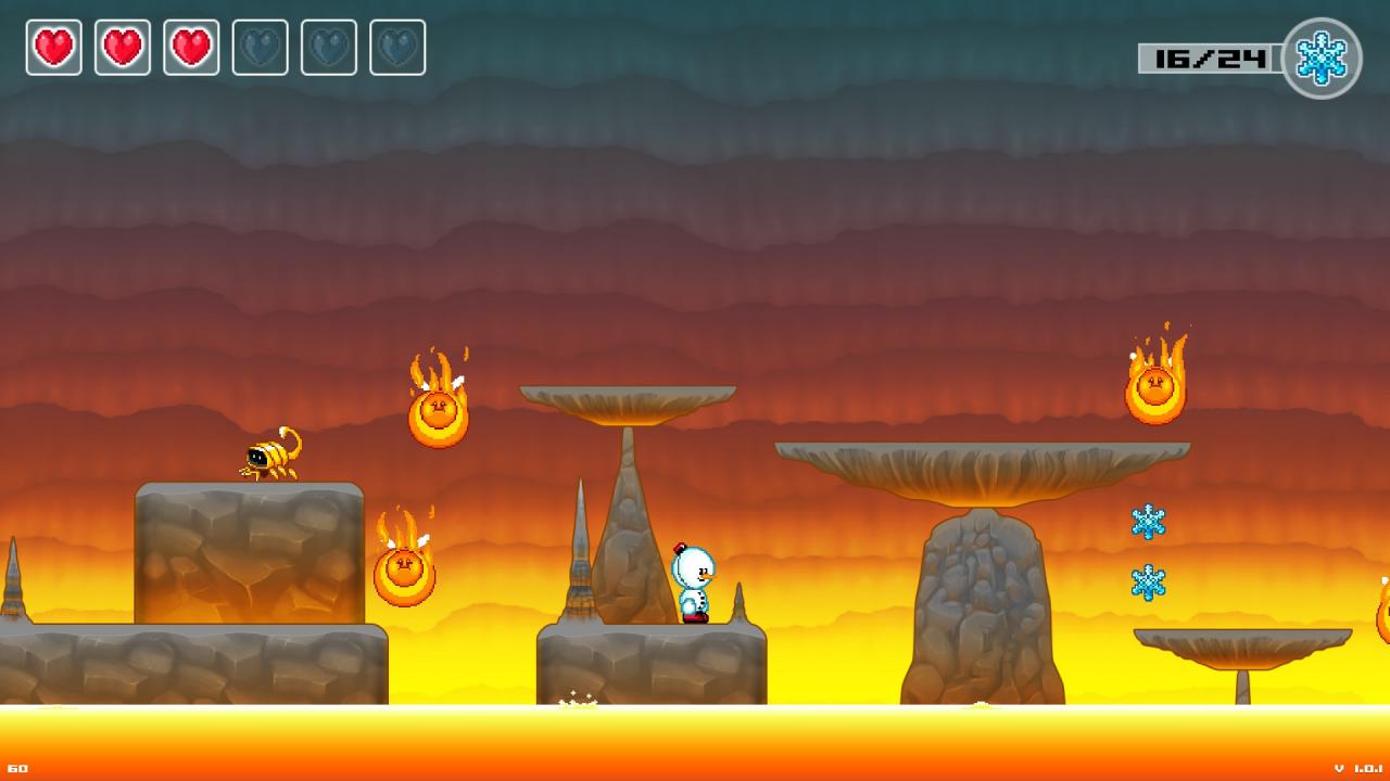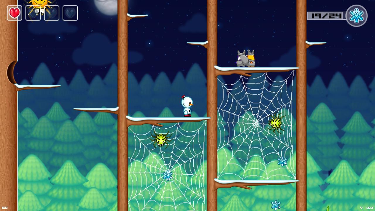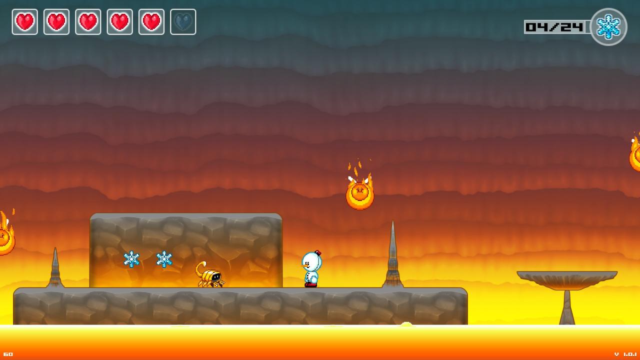 I have included screenshots of all 576 snowflakes- most of them are obvious and straight forward to collect as the game is very linear. There are also screenshots showing the four Heart container locations, and directions to find them. These upgrades are always available on the last level of each area.