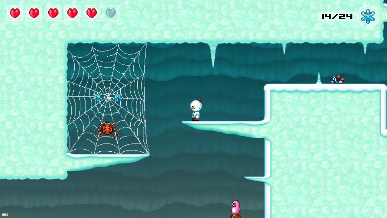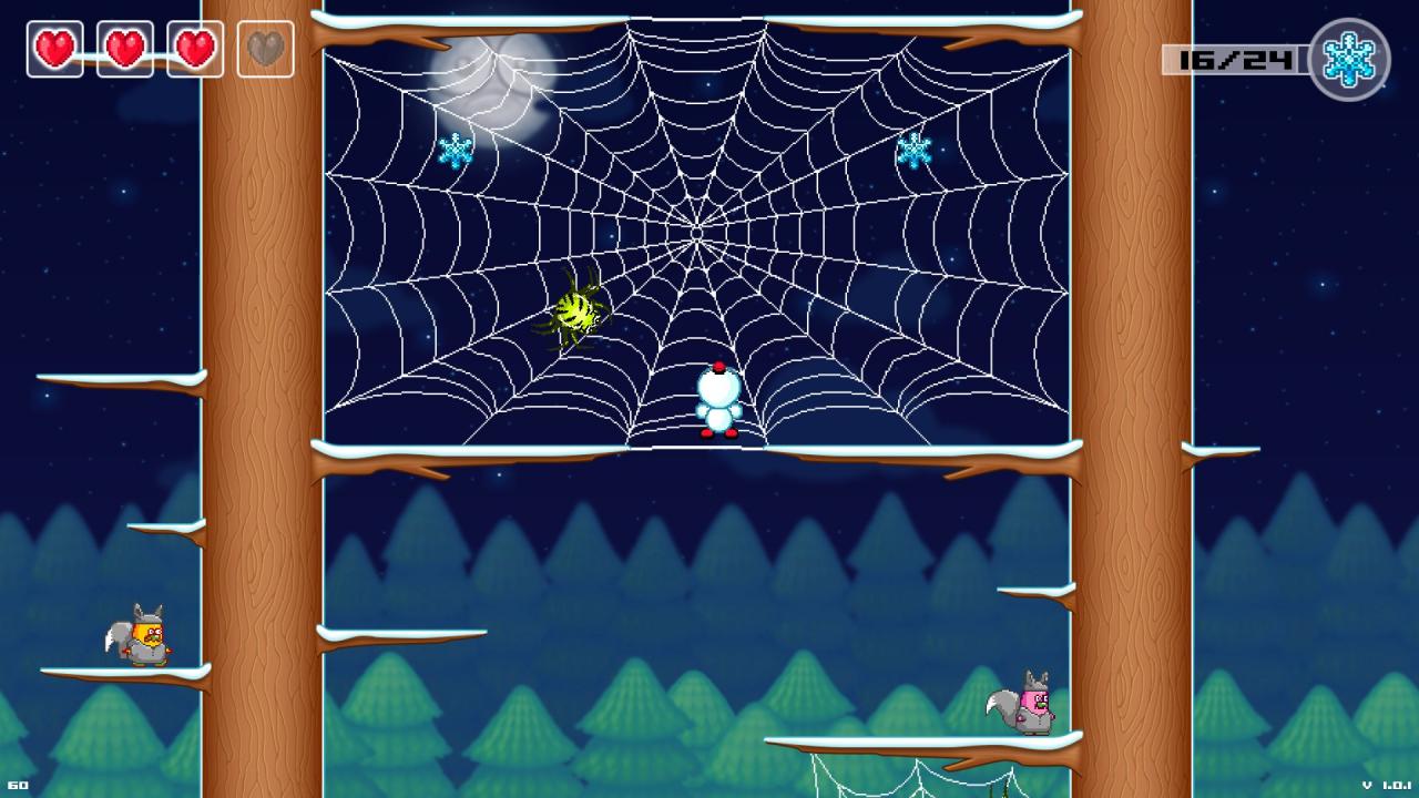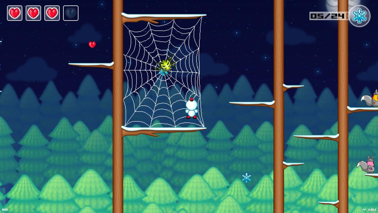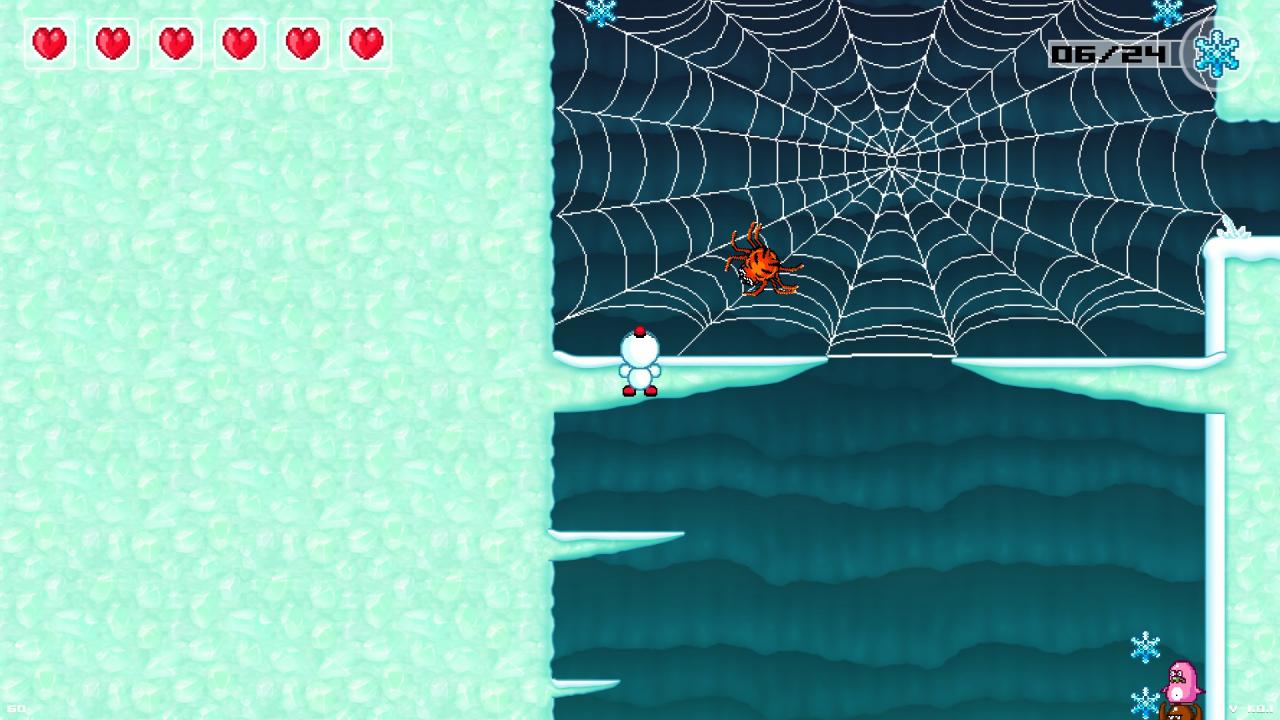 Grab the bottom of the web through the ledge to easily get the two snowflakes on the lower right.