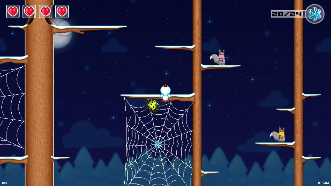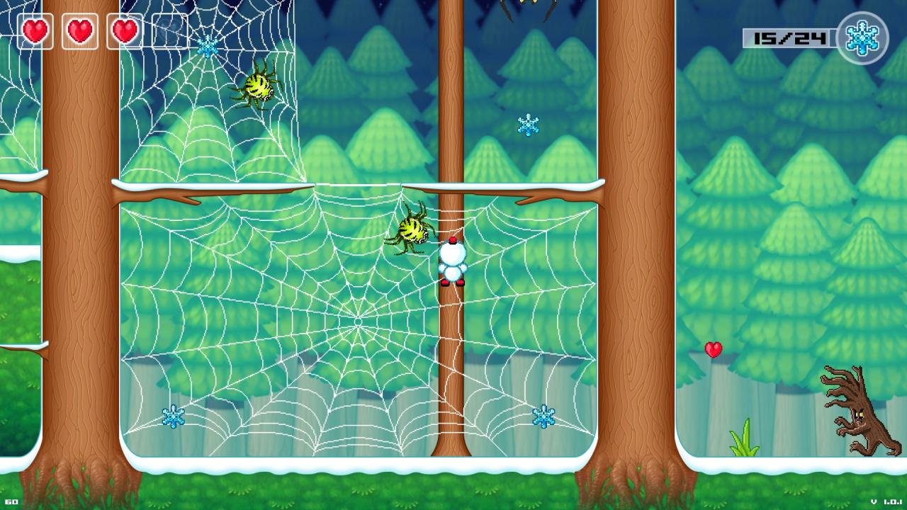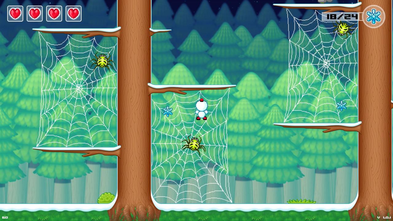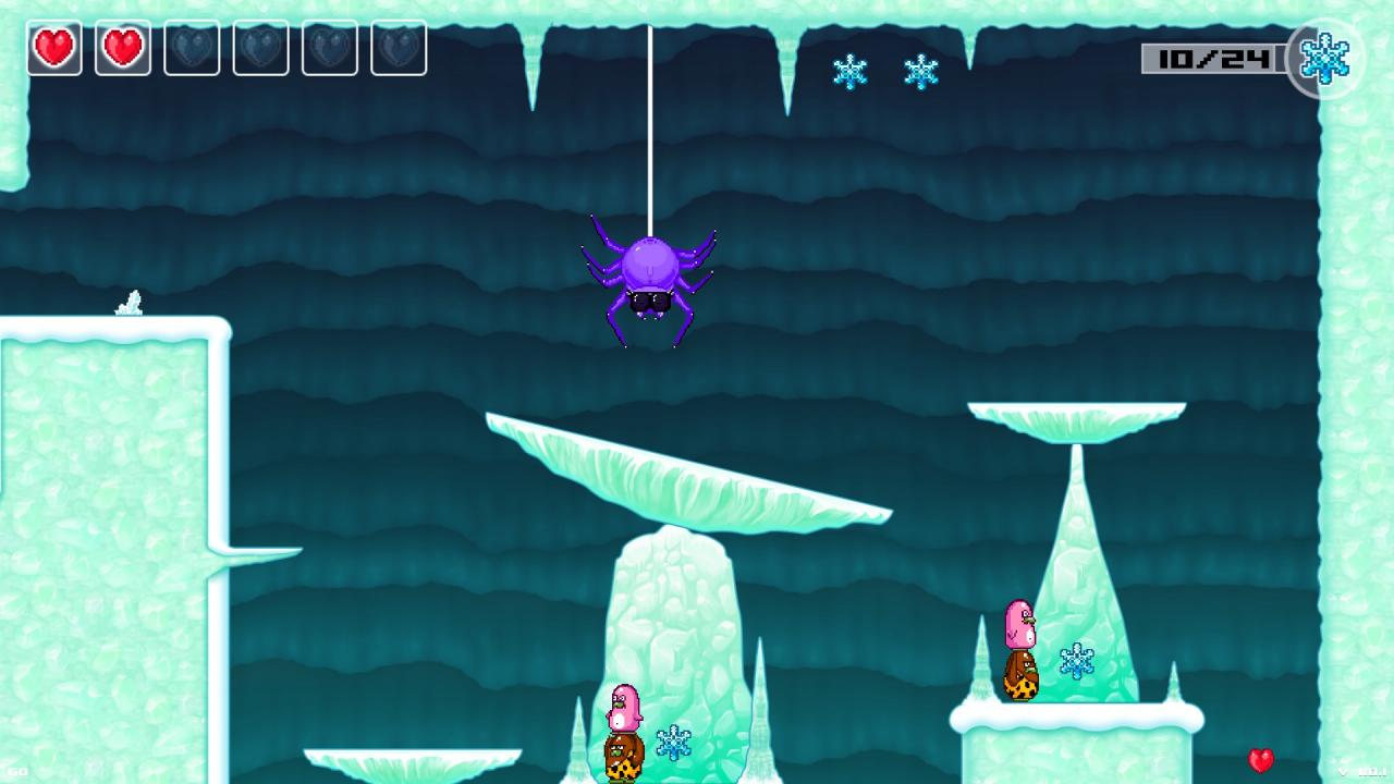 Grab the bottom of the web through the ledge to easily get the two snowflakes on the lower right.