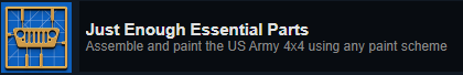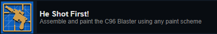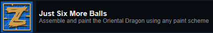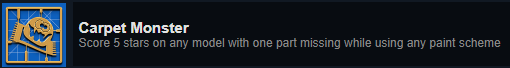 There are several achievements for completing a model in a specific paint scheme. The first two you’ll be asked to do for assignments, but the other three must be completed on your own by purchasing the correct model and selecting the correct painting scheme before opening the kit. You cannot change the paint scheme after starting the project.