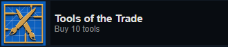 You’ll start with some basic tools and will have to purchase others from the store, more of which will unlock as you level up. There are achievements for purchasing 5 and 10 tools.