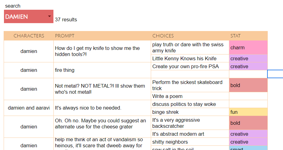 You don’t have to make a copy of the sheet, it’s editable (but only the dropdown part). If someone’s messed with the dropdown and it doesn’t work, just type in the name you’re looking for (in all lowercase). I’ll fix it asap!