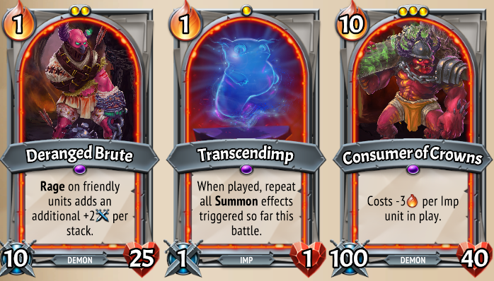 Imp-cicle: At the start of your turn, add a random Imp unit to your hand. If you have a lot of room it’s decent.