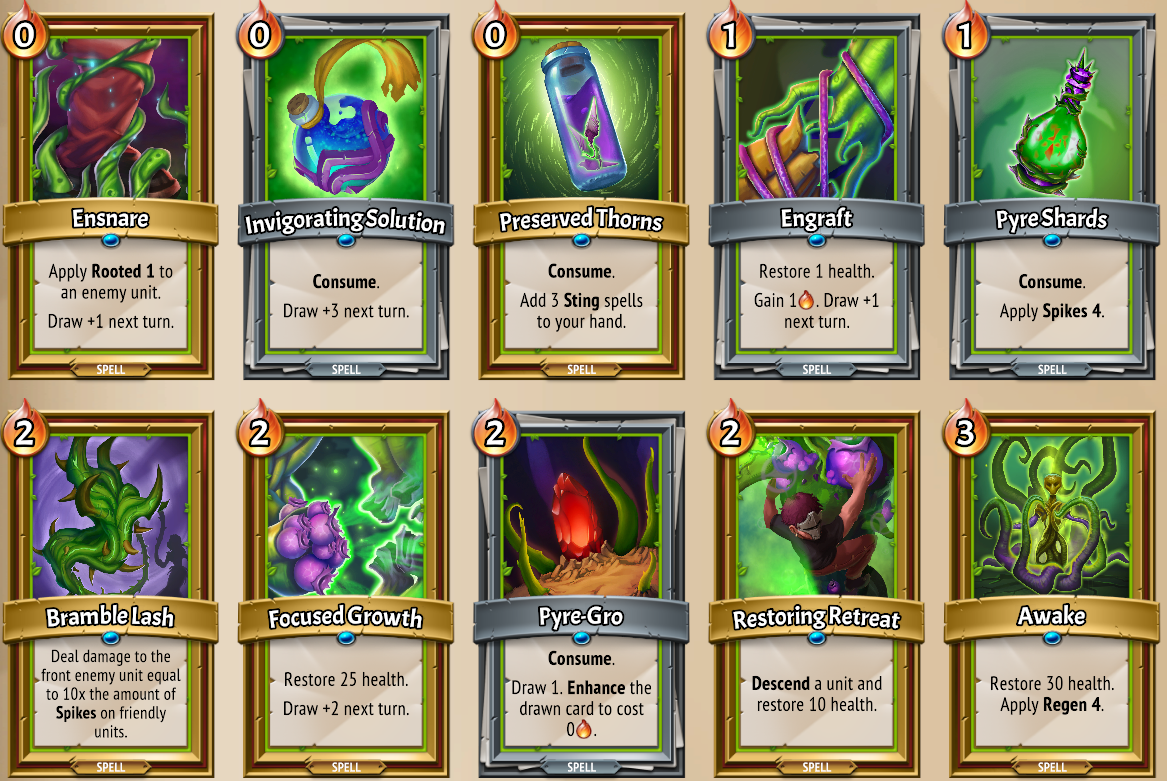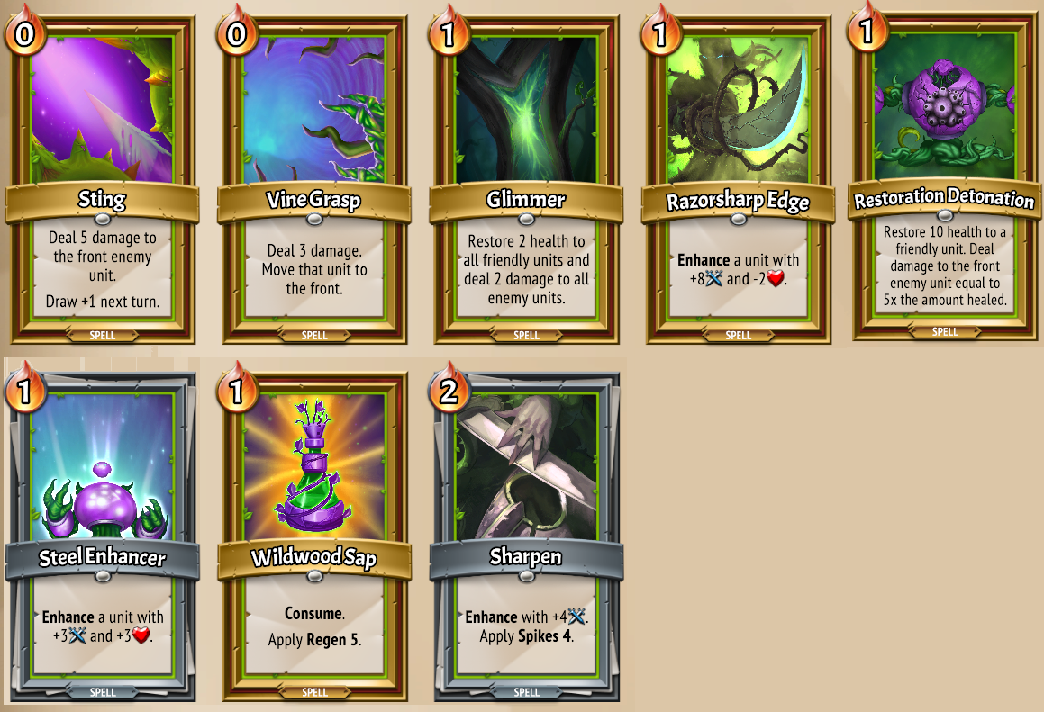 Vine Grasp: A great card once you grasp the ability of moving around units (including your own). One use is killing the weak enemy back line.